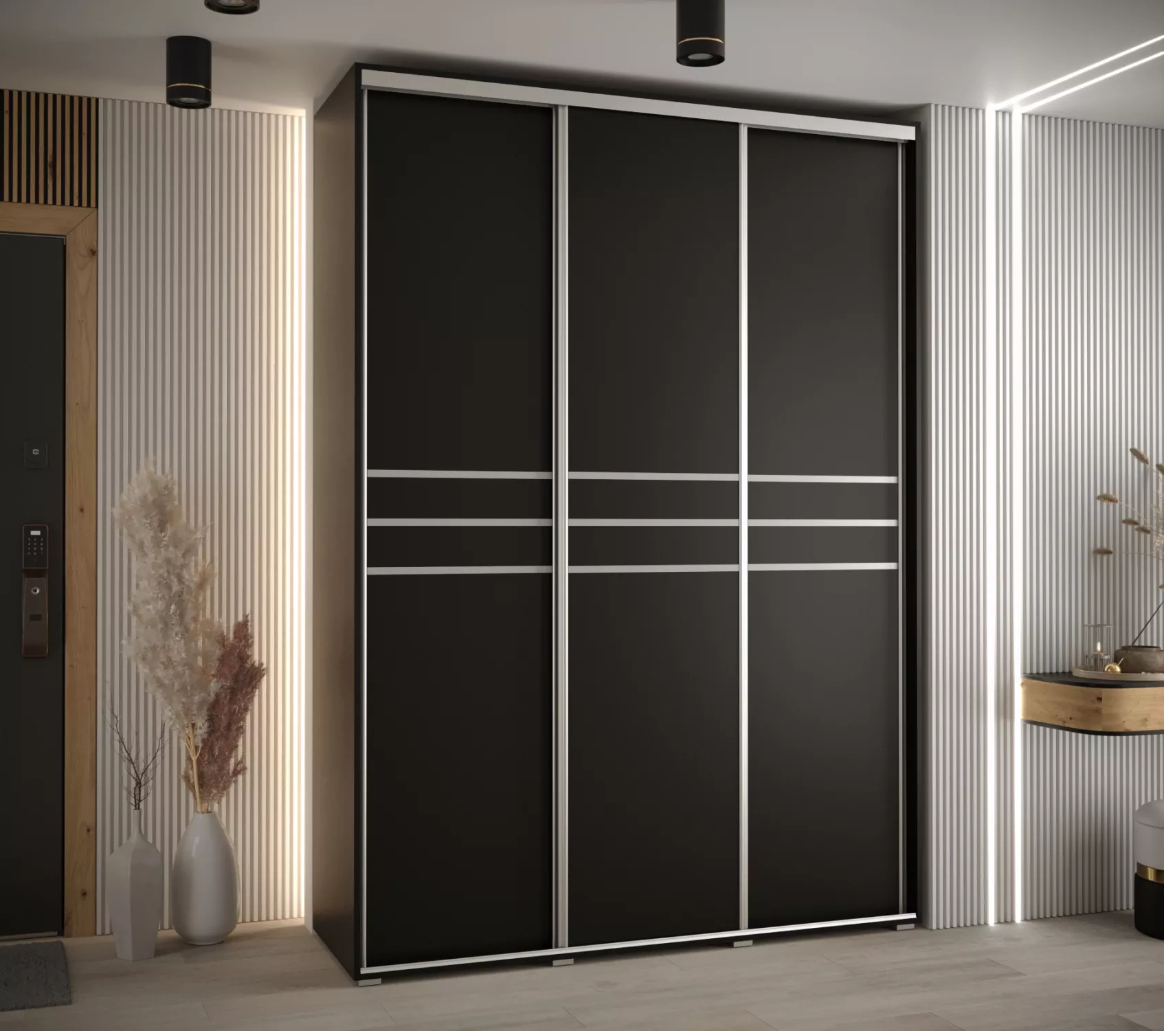 Šatní skříň ASIRI 10 - 170/45 cm, černá / stříbrná