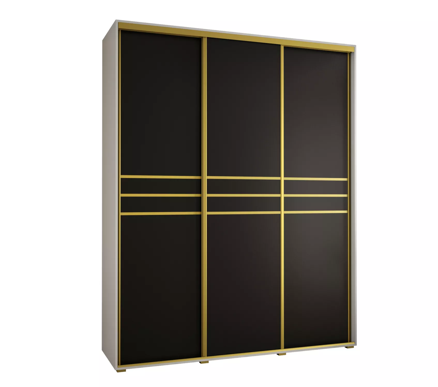 Šatní skříň ASIRI 10 - 190/45 cm, bílá / černá / zlatá