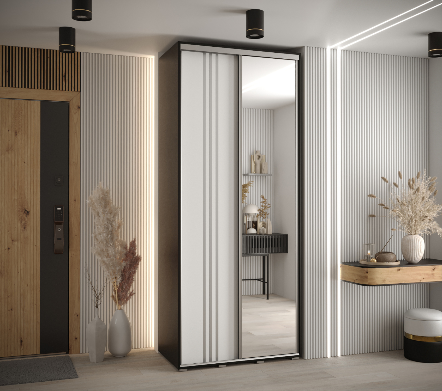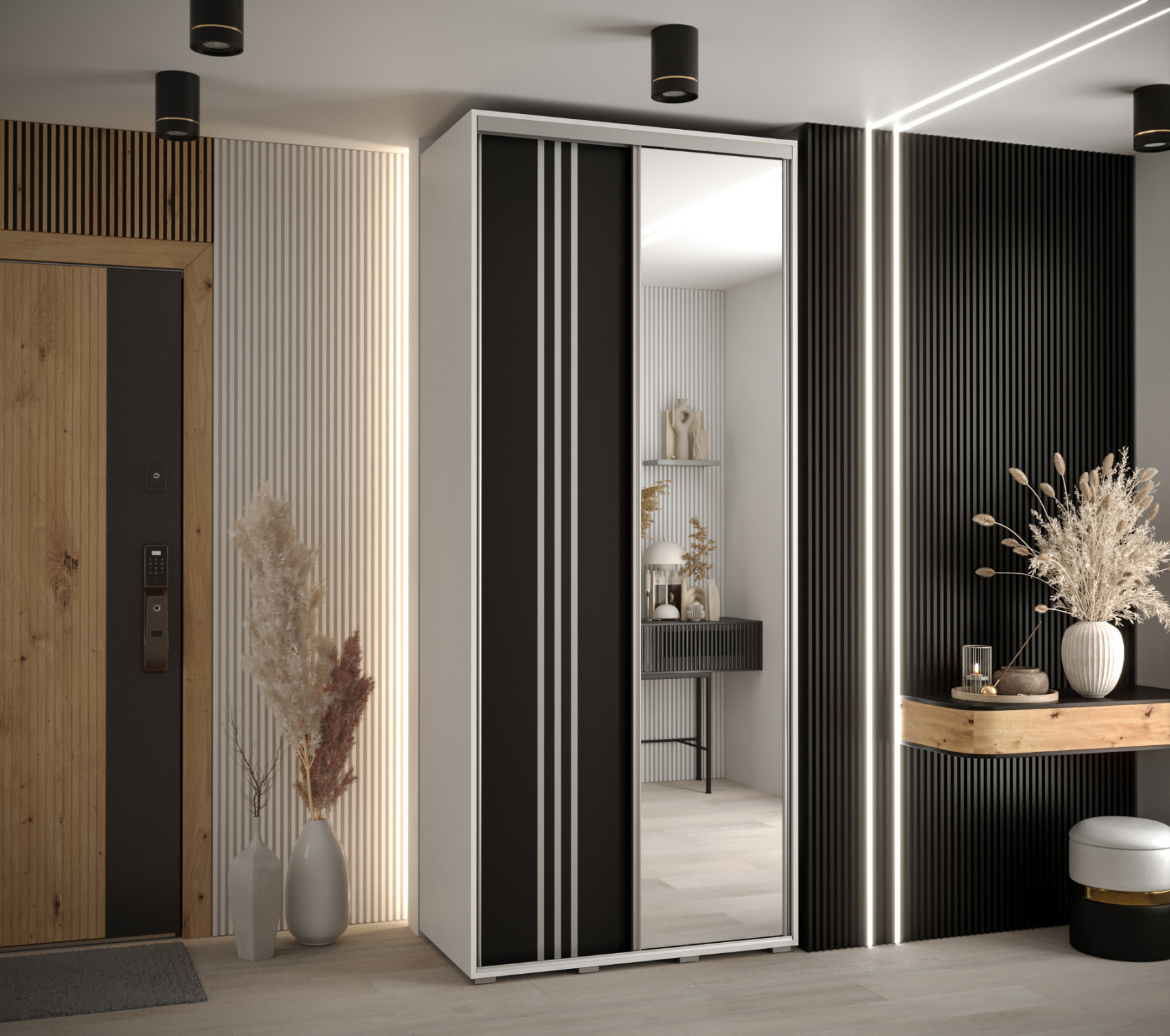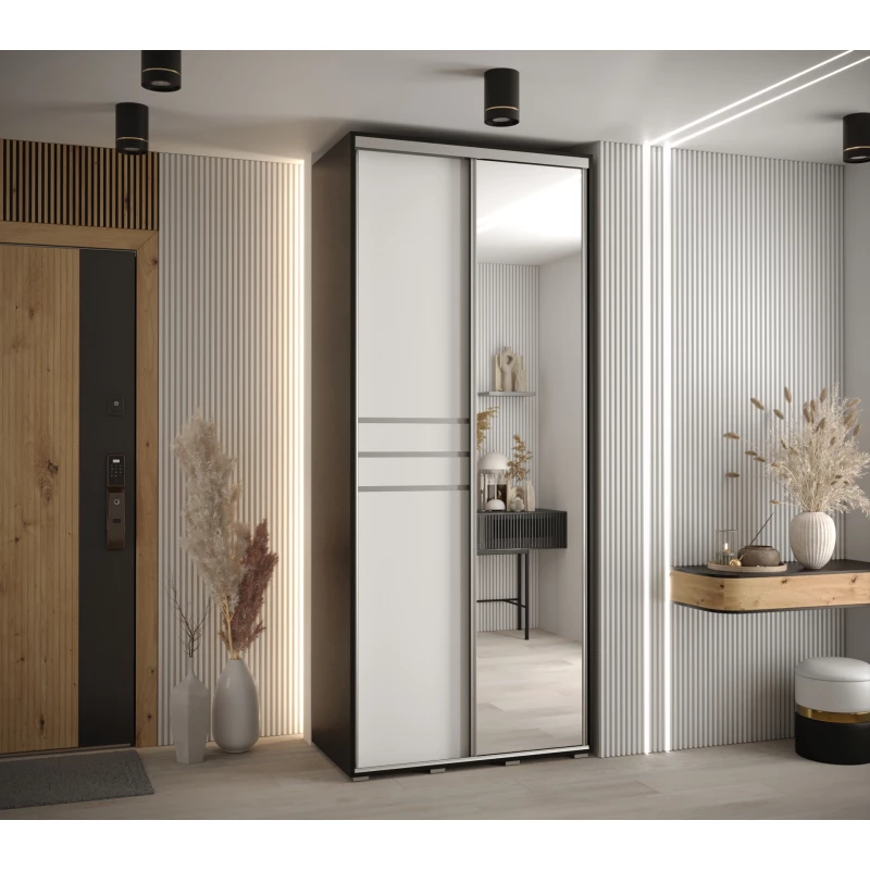 Šatní skříň ASIRI 11 - 100/45 cm, černá / bílá / stříbrná