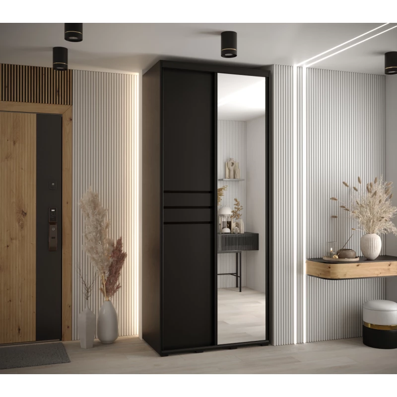 Šatní skříň ASIRI 11 - 100/45 cm, černá / černá