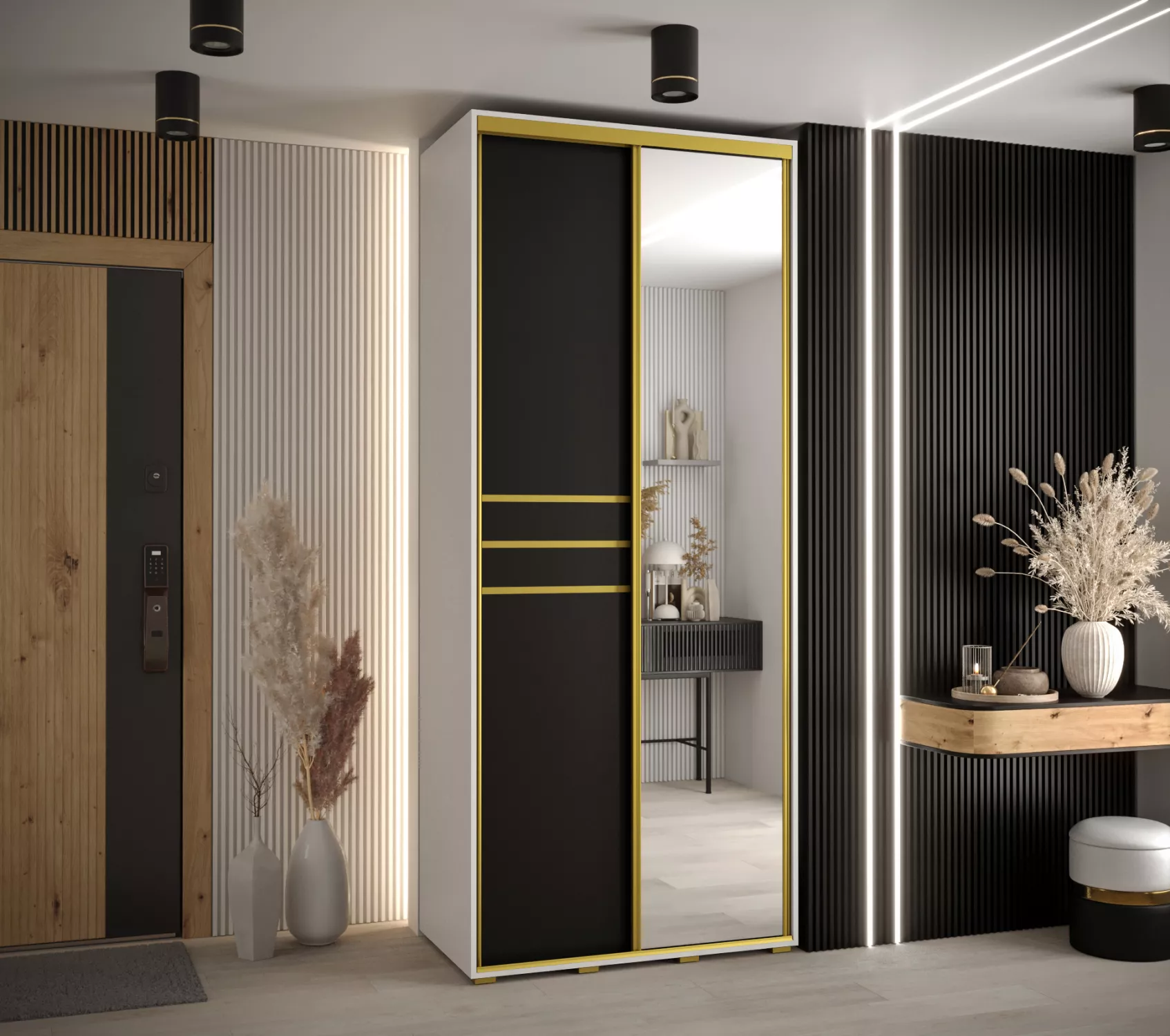 Šatní skříň ASIRI 11 - 120/45 cm, bílá / černá / zlatá