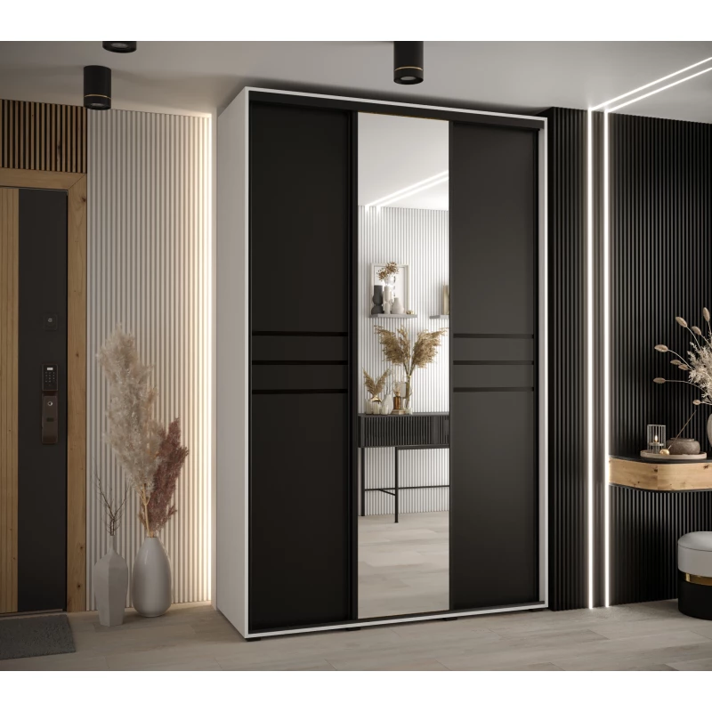 Šatní skříň ASIRI 11 - 160/45 cm, bílá / černá / černá