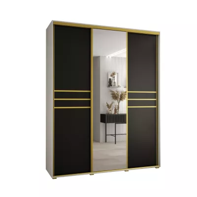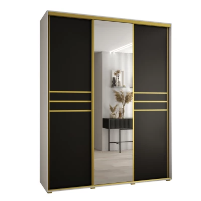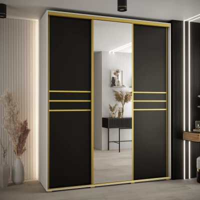 Šatní skříň ASIRI 11 - 200/45 cm, bílá / černá / zlatá