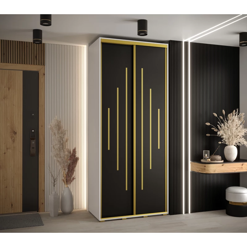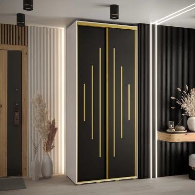 Šatní skříň ASIRI 12 - 110/45 cm, bílá / černá / zlatá