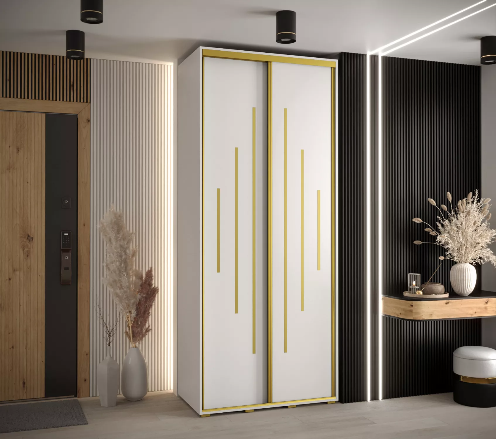 Šatní skříň ASIRI 12 - 110/45 cm, bílá / zlatá