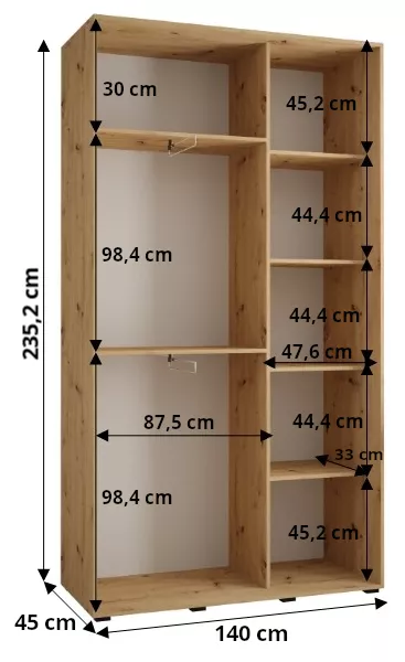 Šatní skříň ASIRI zaujme svým moderním designem a praktickými prvky. Šatní skříň má posuvné dveře, které se neotvírají do prostoru a ušetří tak spoustu místa.