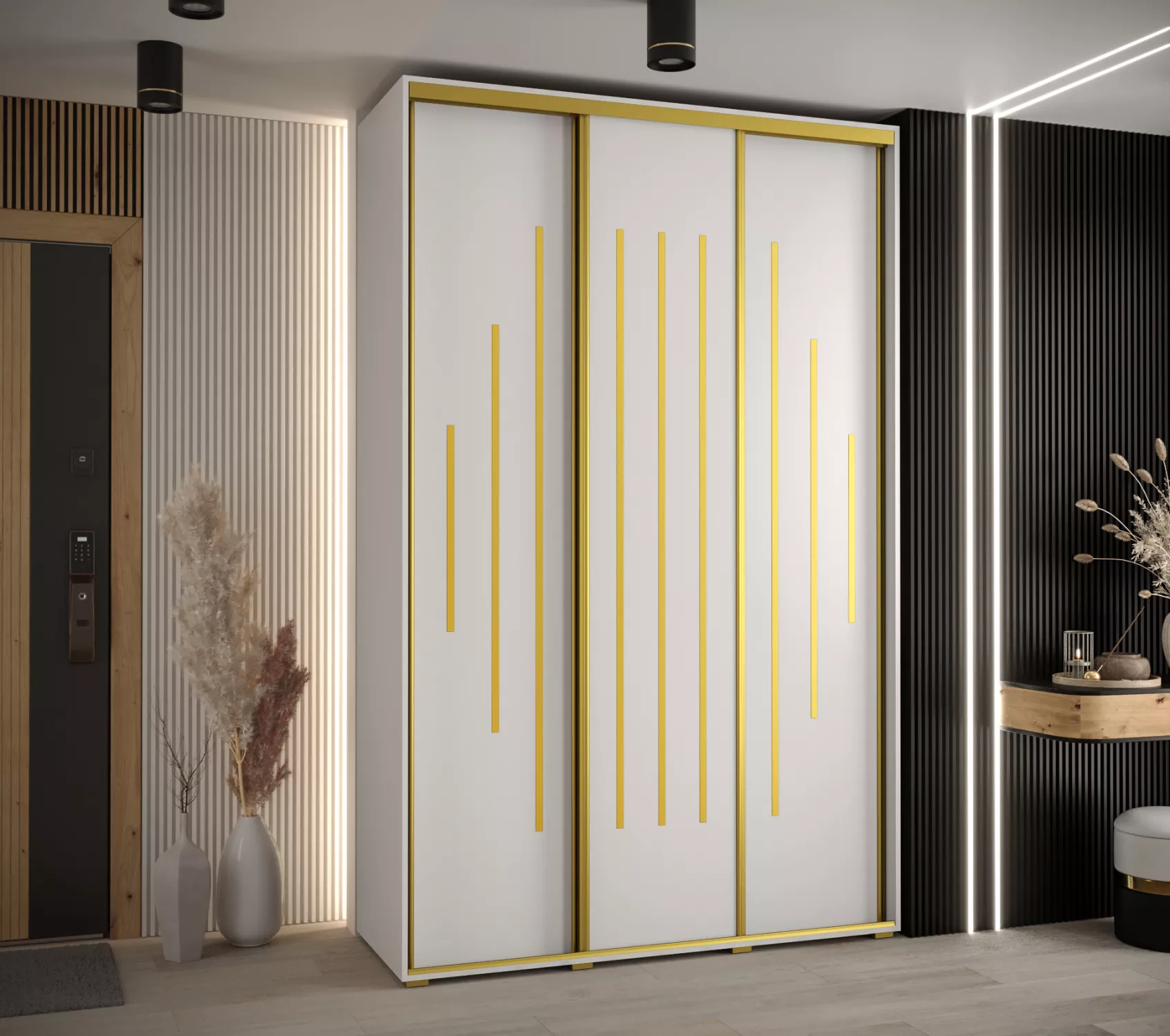 Šatní skříň ASIRI 12 - 150/45 cm, bílá / zlatá