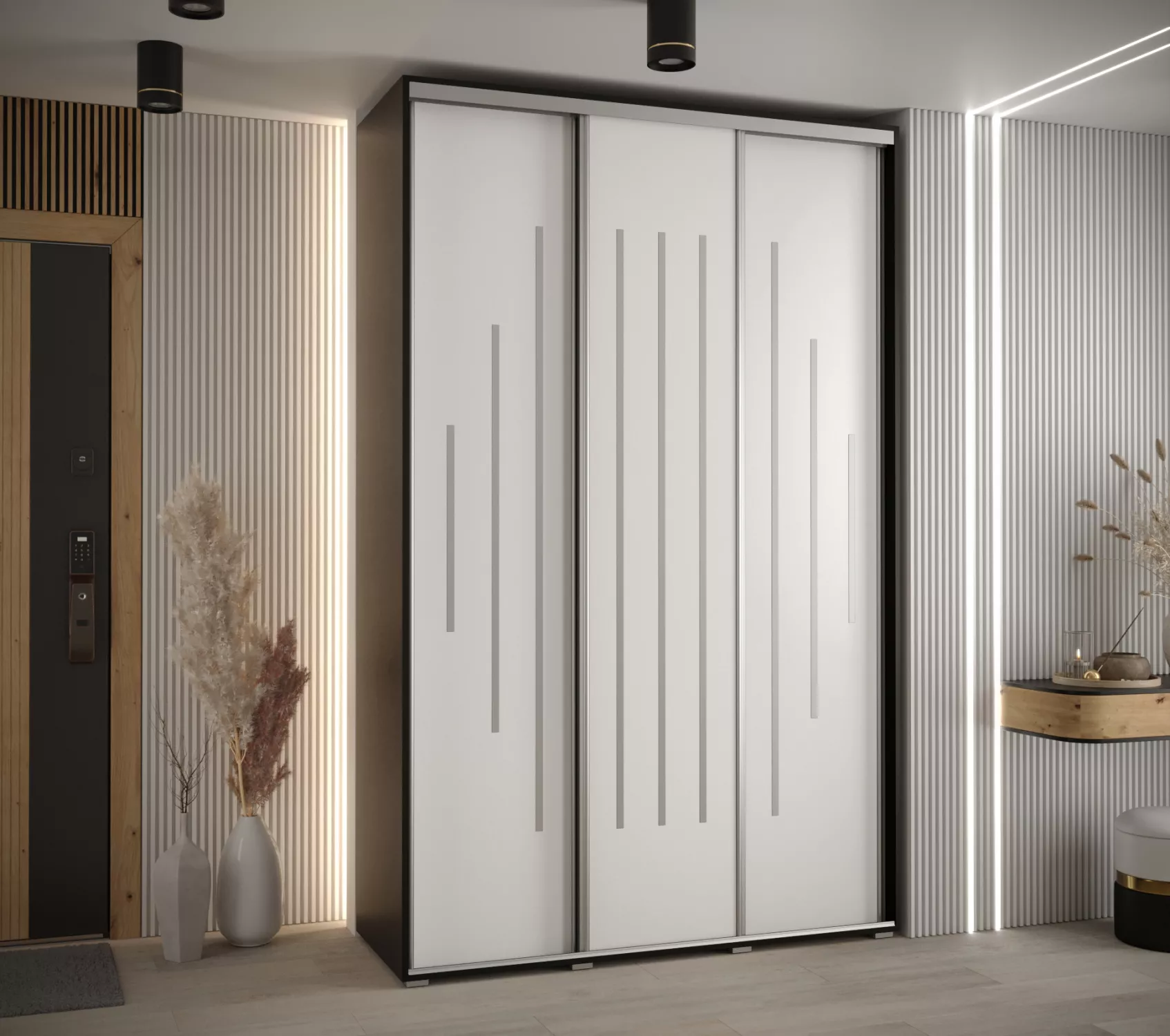 Šatní skříň ASIRI 12 - 150/45 cm, černá / bílá / stříbrná