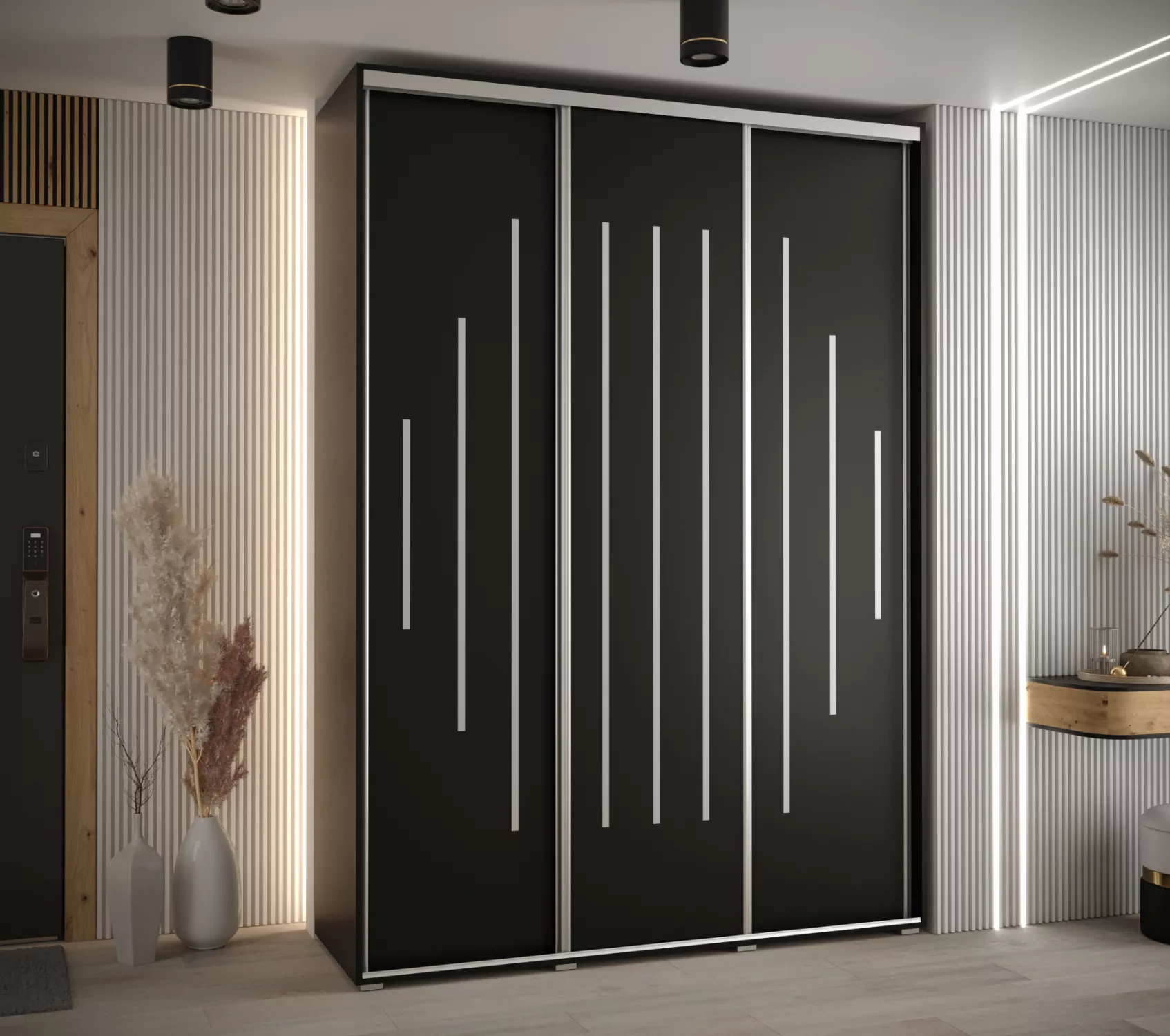 Šatní skříň ASIRI 12 - 170/45 cm, černá / stříbrná