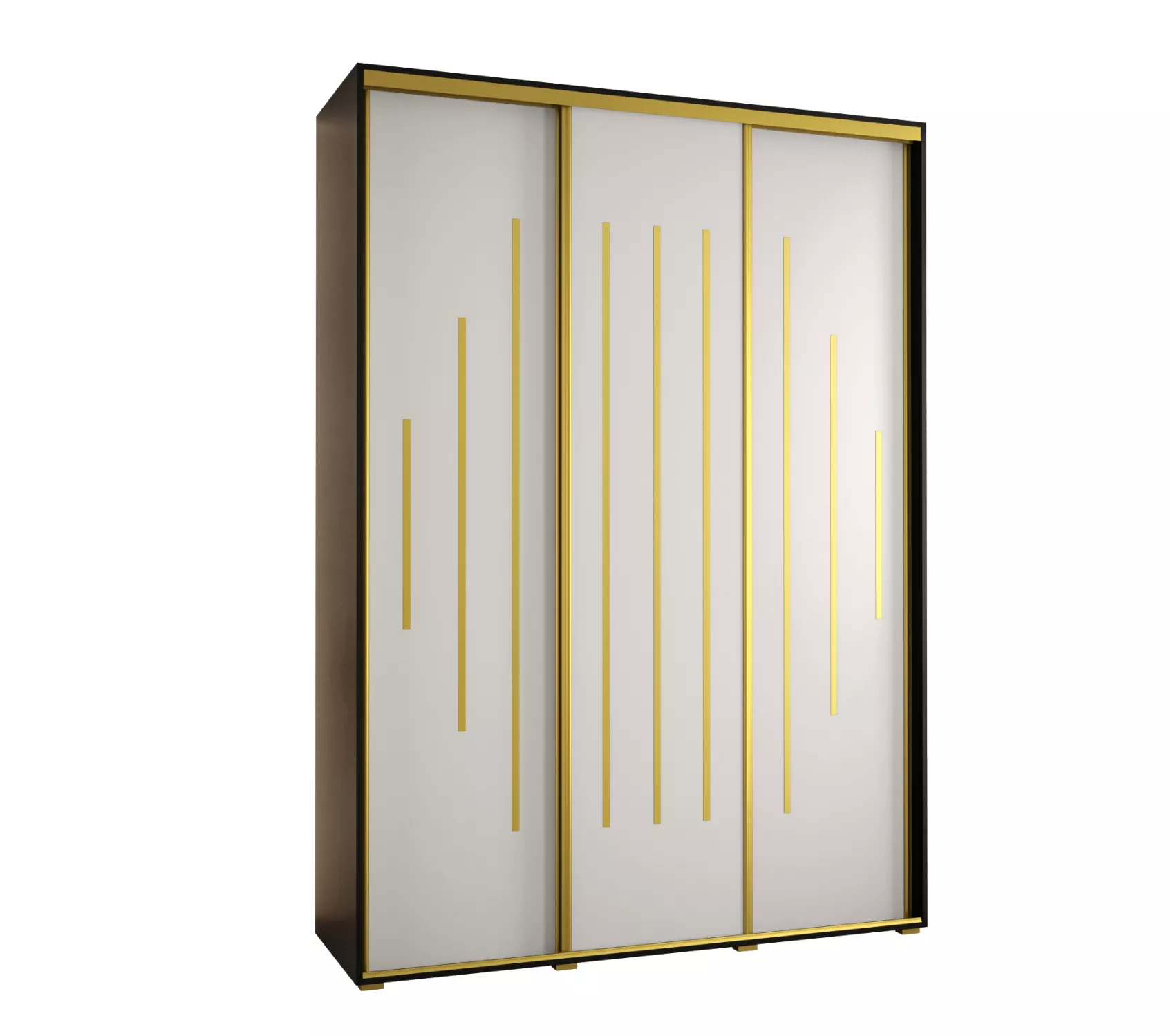 Šatní skříň ASIRI 12 - 180/45 cm, černá / bílá / zlatá