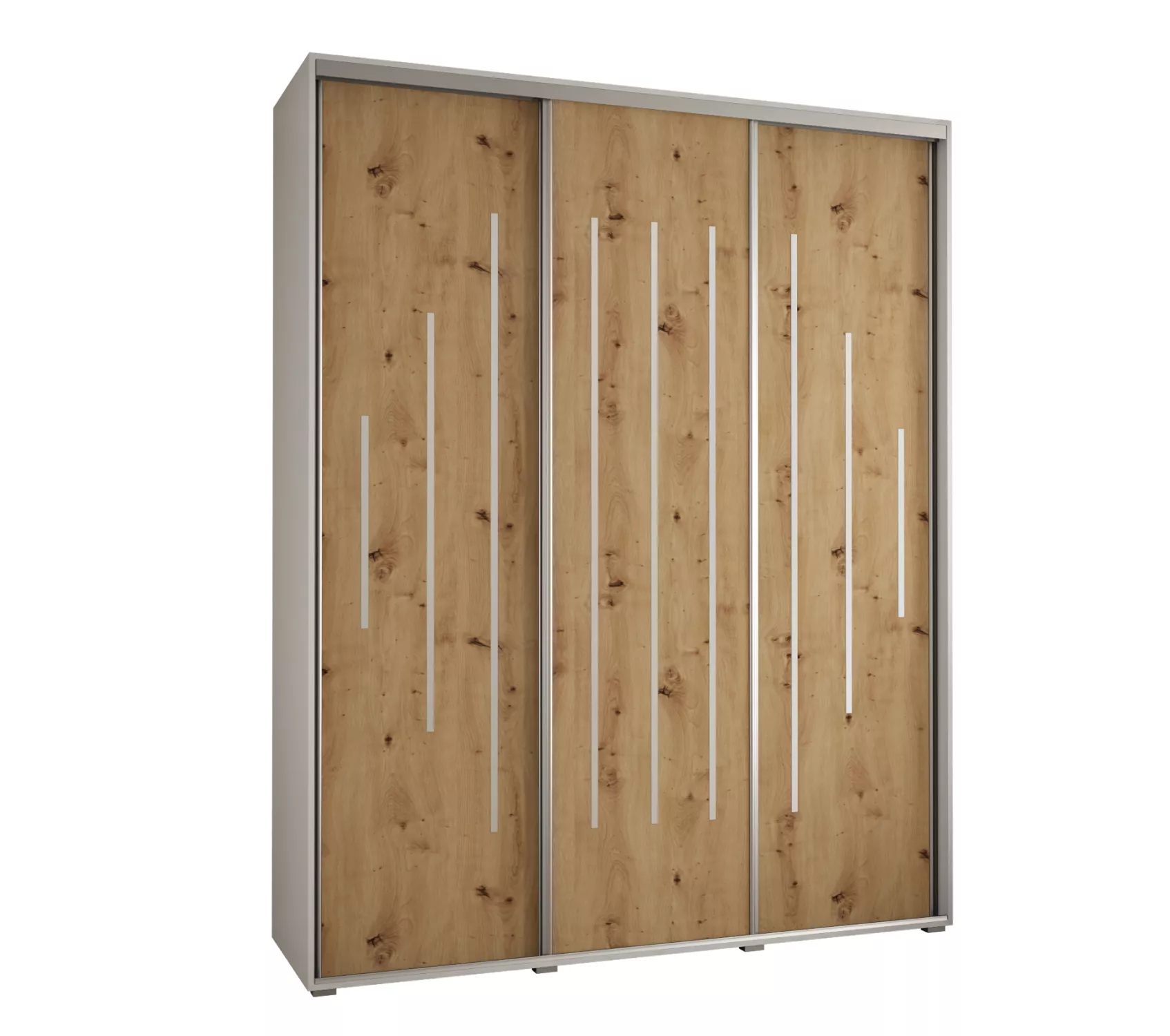 Šatní skříň ASIRI 12 - 200/45 cm, bílá / dub artisan / stříbrná