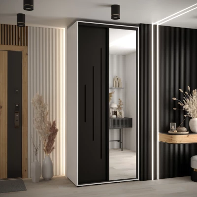 Šatní skříň ASIRI 13 - 100/45 cm, bílá / černá / černá