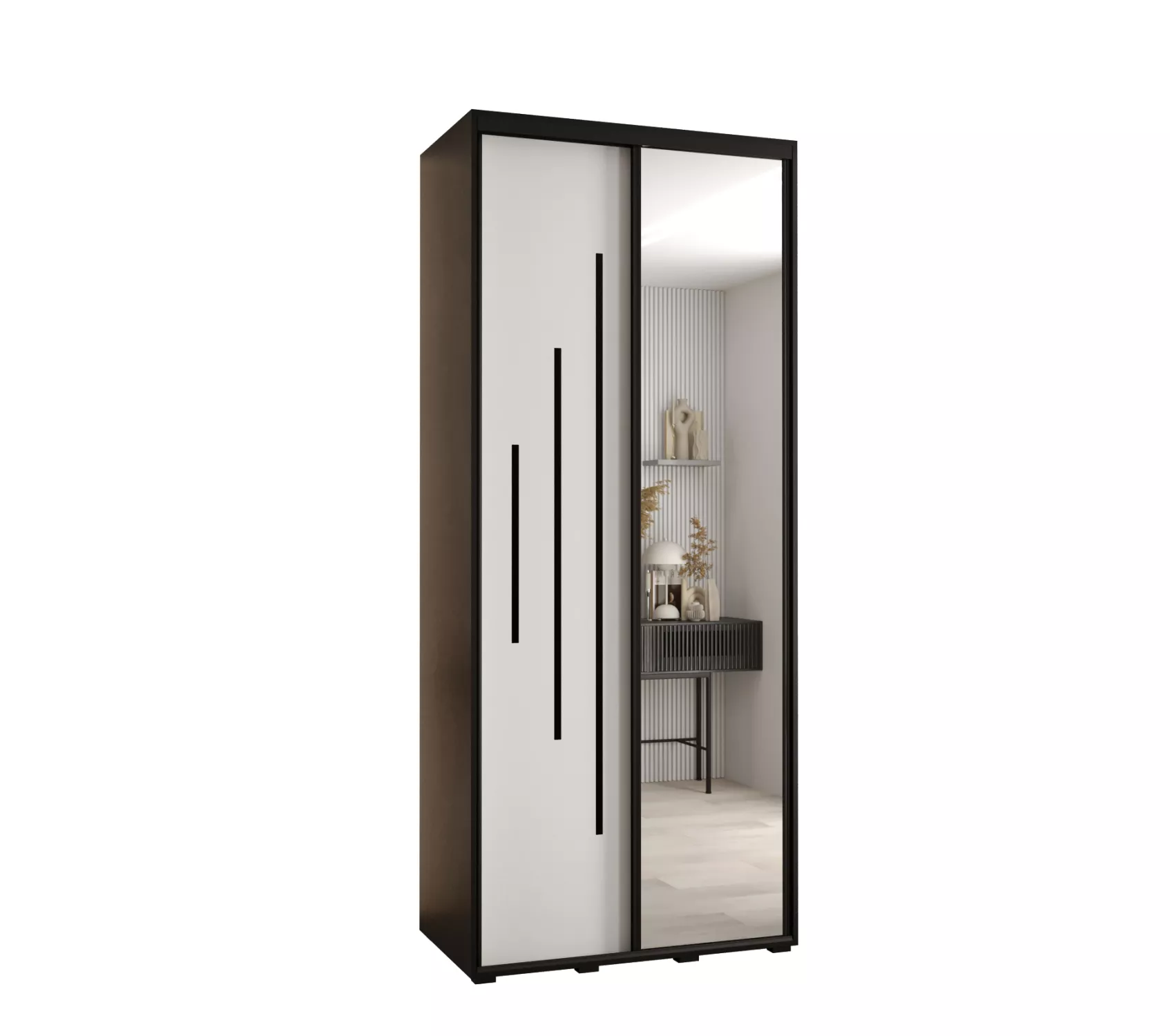 Šatní skříň ASIRI 13 - 100/45 cm, černá / bílá / černá