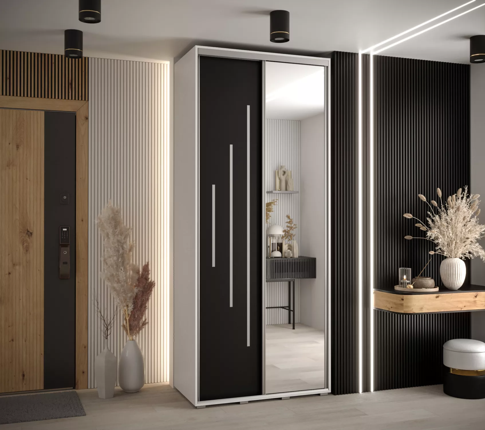 Šatní skříň ASIRI 13 - 110/45 cm, bílá / černá / stříbrná