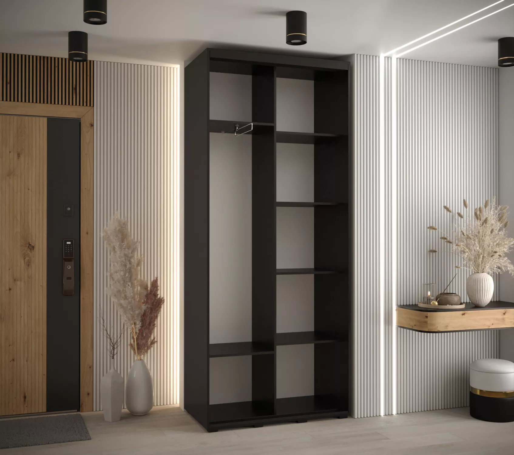 Šatní skříň ASIRI 13 - 120/45 cm, černá / stříbrná