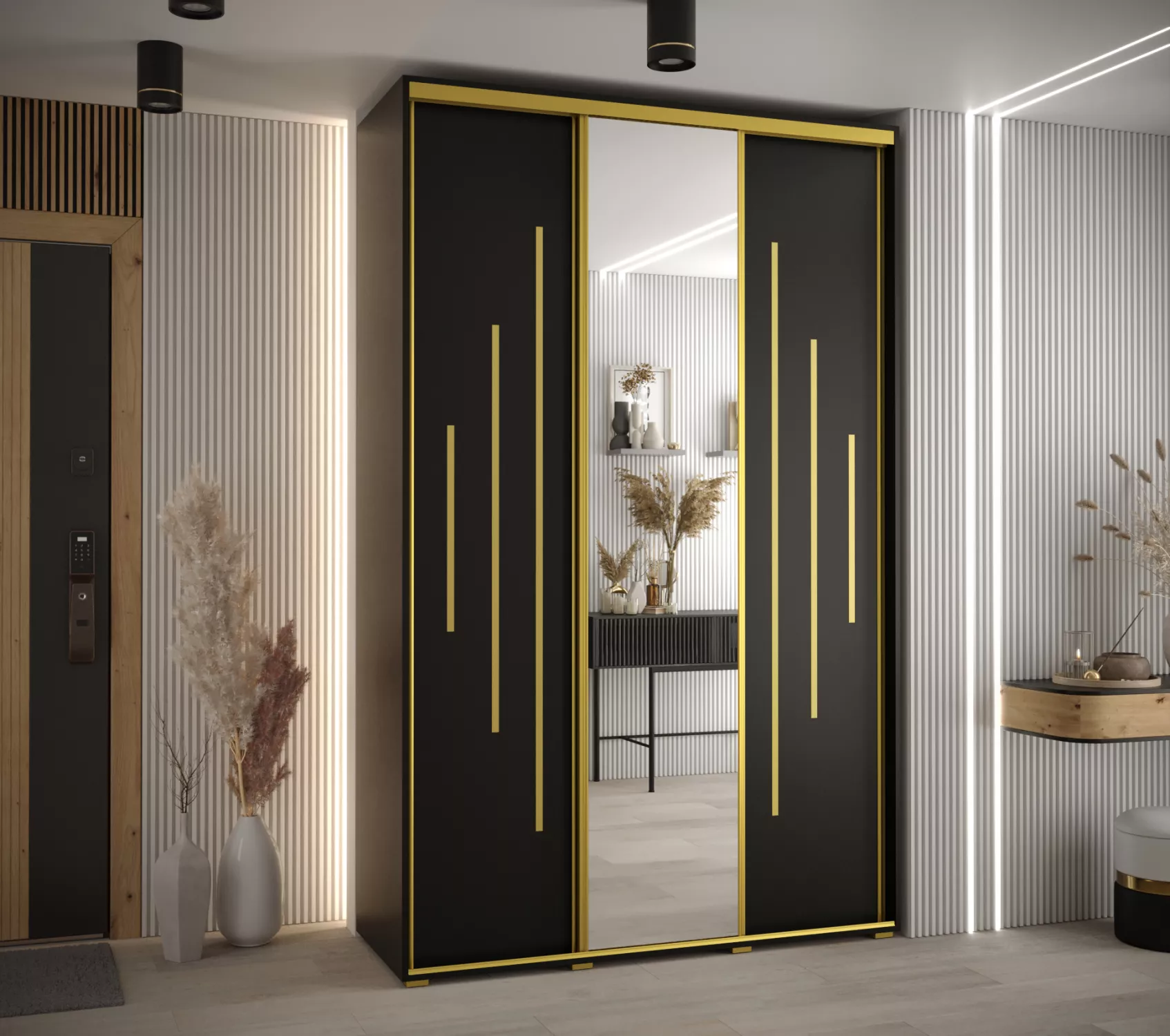 Šatní skříň ASIRI 13 - 150/45 cm, černá / zlatá