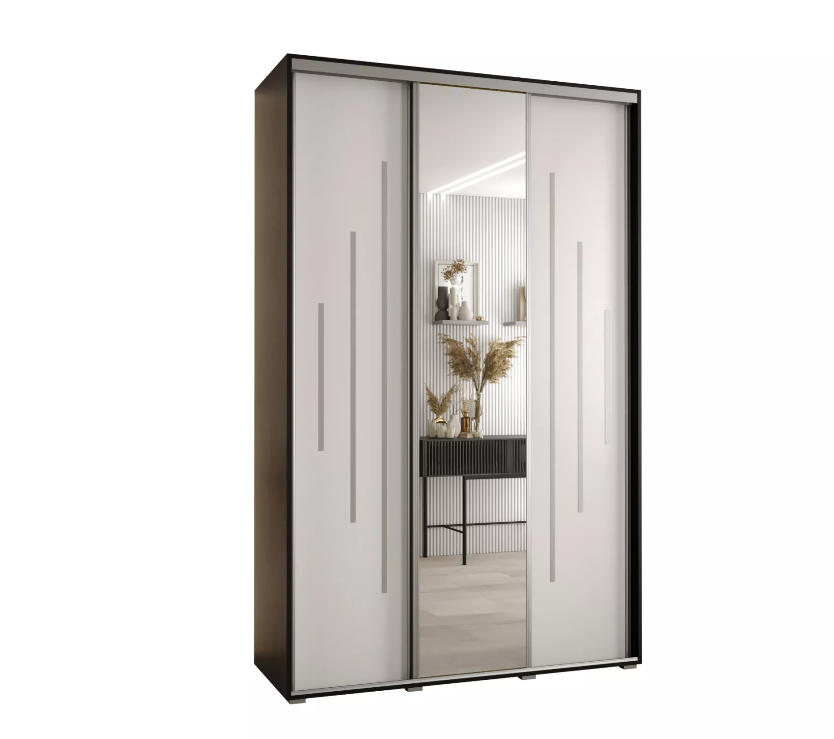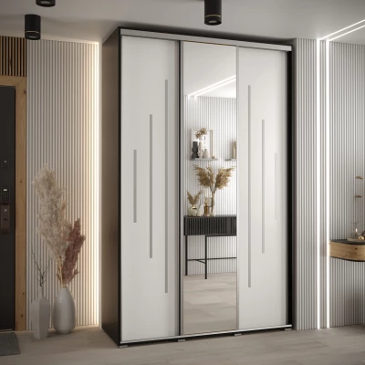 Šatní skříň ASIRI 13 - 160/45 cm, černá / bílá / stříbrná