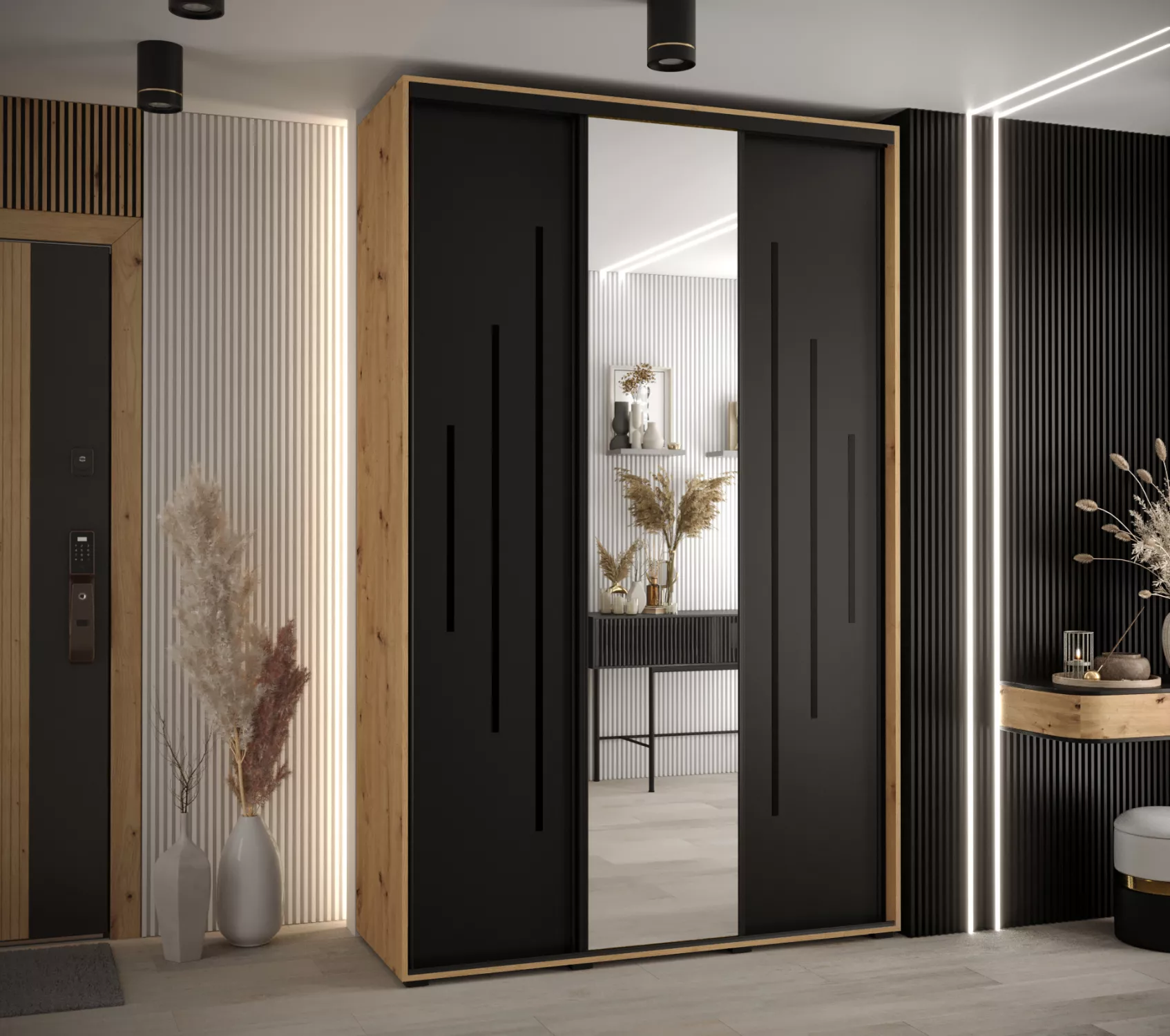 Šatní skříň ASIRI 13 - 160/45 cm, dub artisan / černá / černá