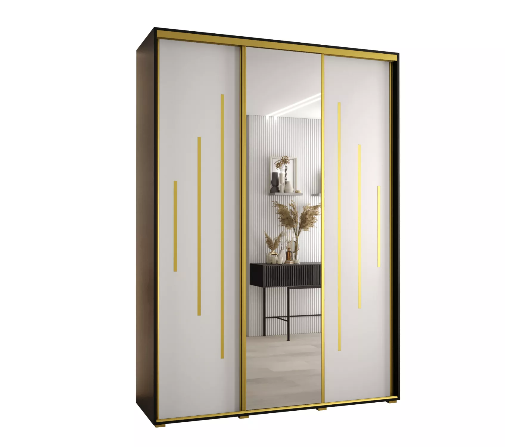 Šatní skříň ASIRI 13 - 170/45 cm, černá / bílá / zlatá