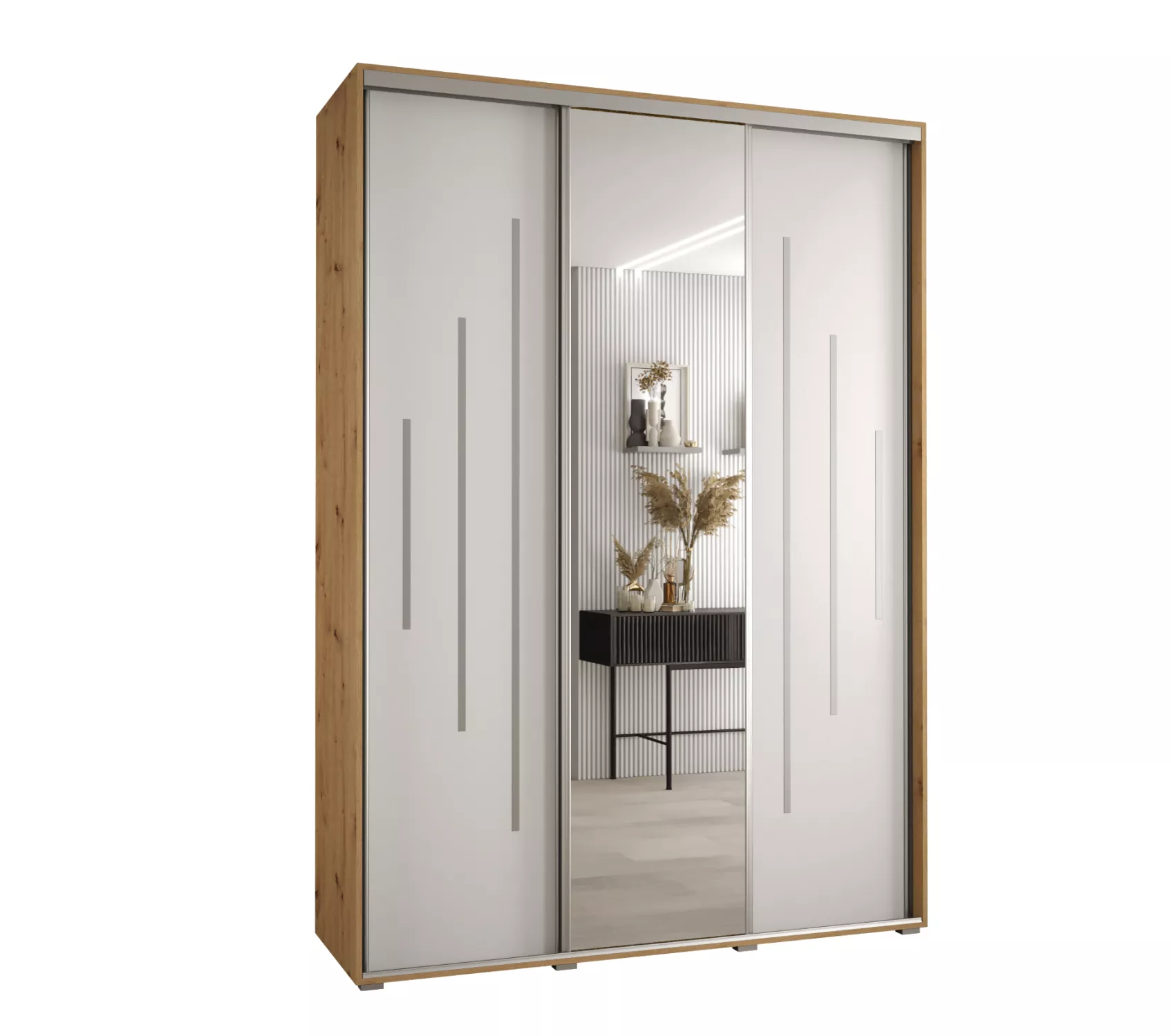 Šatní skříň ASIRI 13 - 170/45 cm, dub artisan / bílá / stříbrná