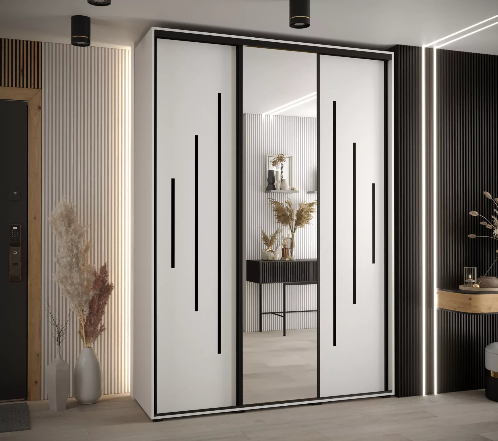 Šatní skříň ASIRI 13 - 180/45 cm, bílá / černá