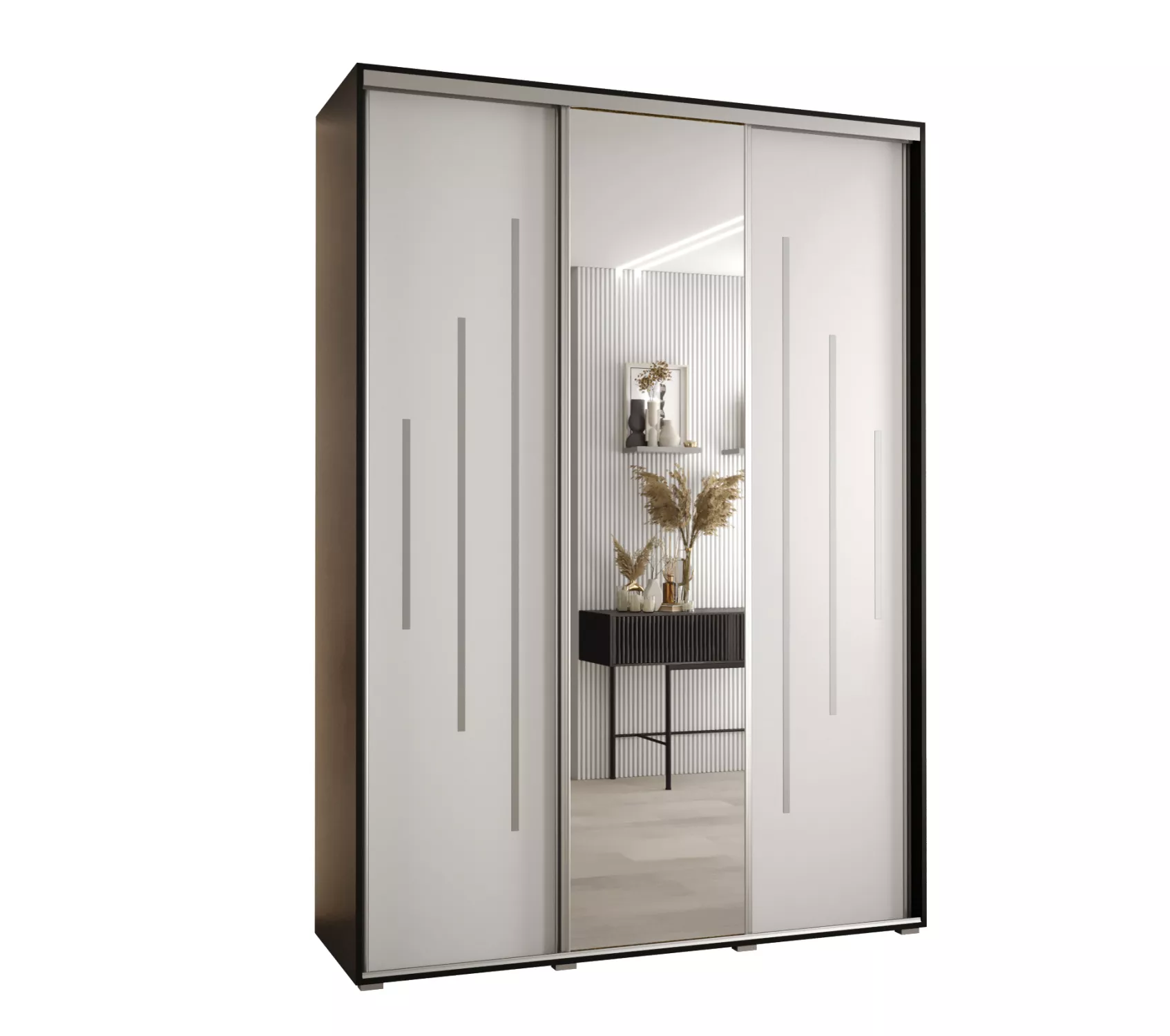 Šatní skříň ASIRI 13 - 180/45 cm, černá / bílá / stříbrná