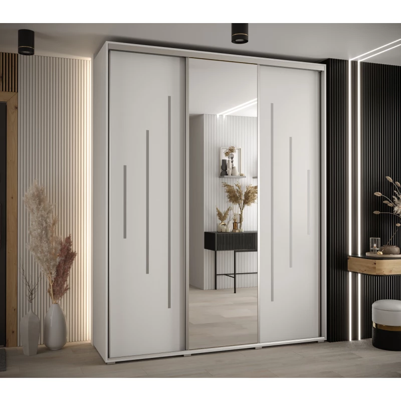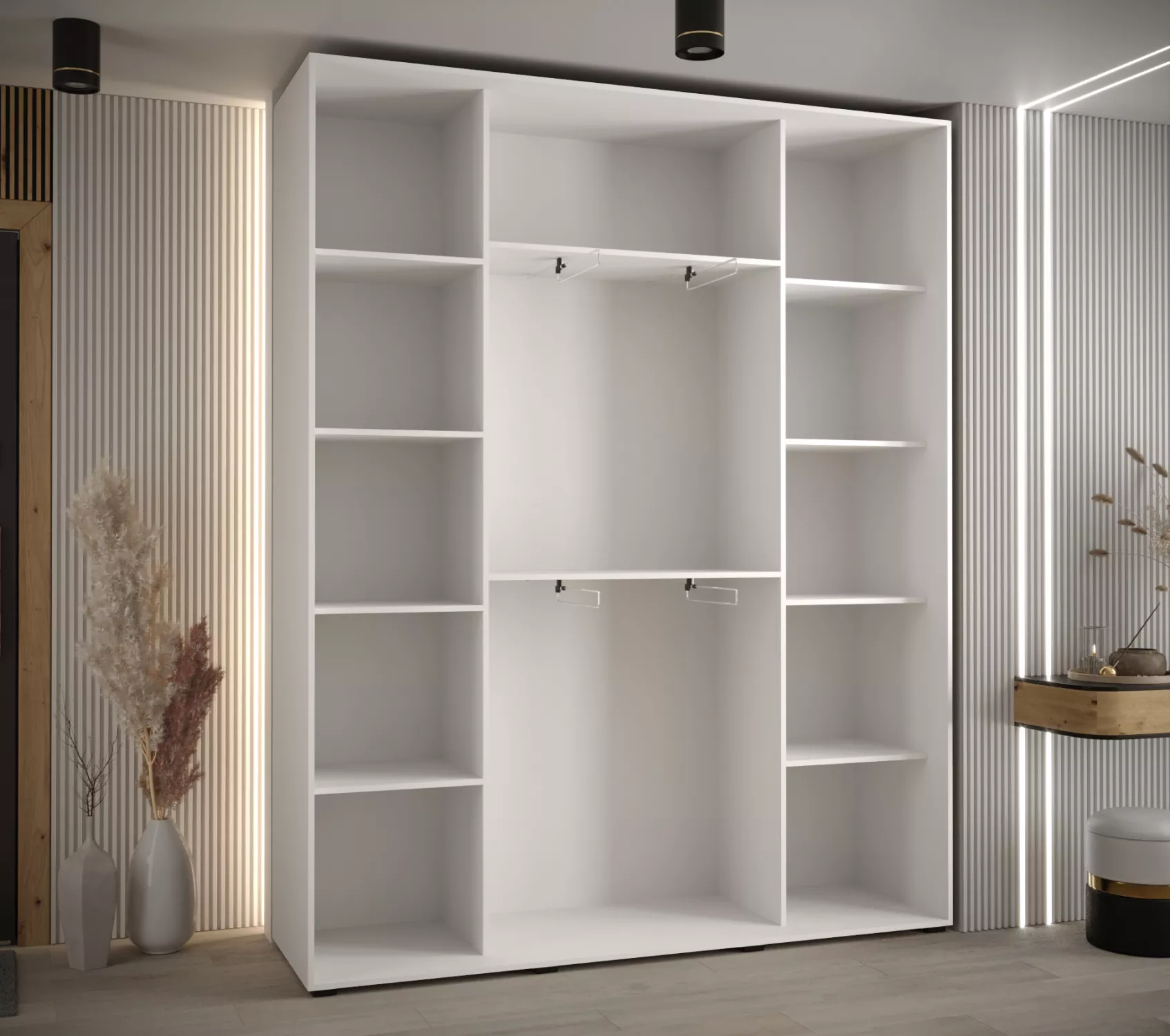 Šatní skříň ASIRI zaujme svým moderním designem a praktickými prvky. Šatní skříň má posuvné dveře, které se neotvírají do prostoru a ušetří tak spoustu místa.