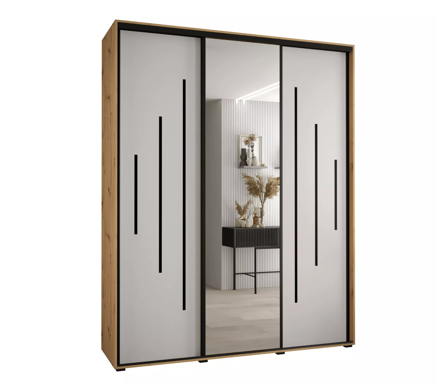 Šatní skříň ASIRI 13 - 200/45 cm, dub artisan / bílá / černá