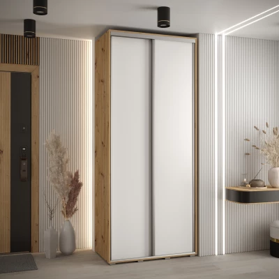 Šatní skříň ASIRI 1 - 110/60 cm, dub artisan / bílá / stříbrná