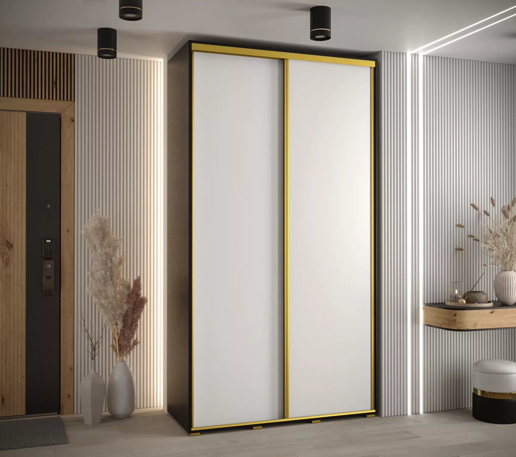 Šatní skříň ASIRI 1 - 140/60 cm, černá / bílá / zlatá