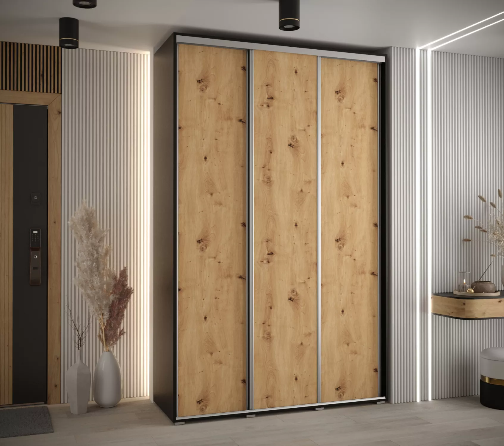 Šatní skříň ASIRI 1 - 150/60 cm, černá / dub artisan / stříbrná