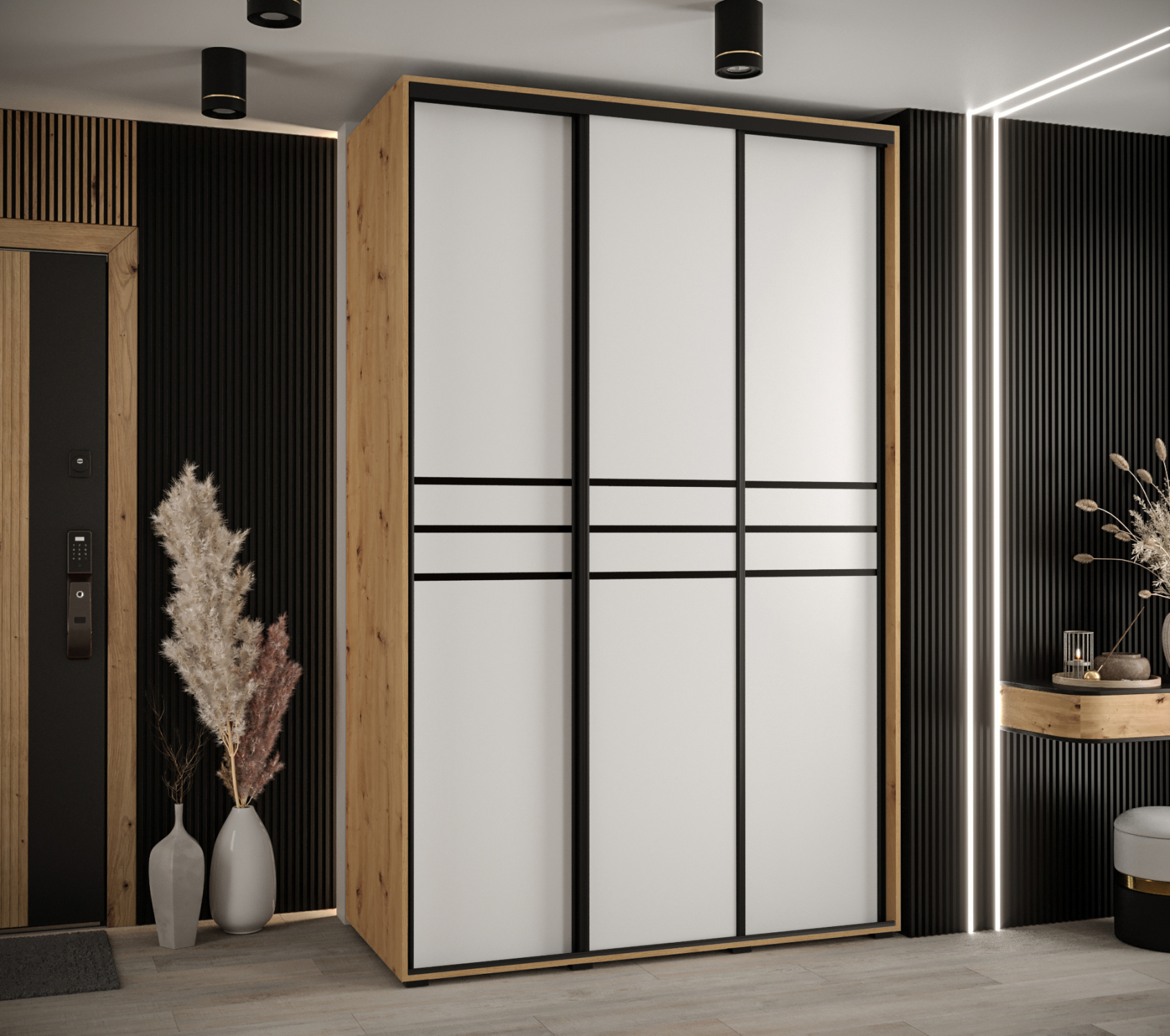 Šatní skříň ASIRI zaujme svým moderním designem a praktickými prvky. Skříň má posuvné dveře, které se neotvírají do prostoru a ušetří tak spoustu místa. Vnitřek skříně lze uspořádat dle vašich potřeb.