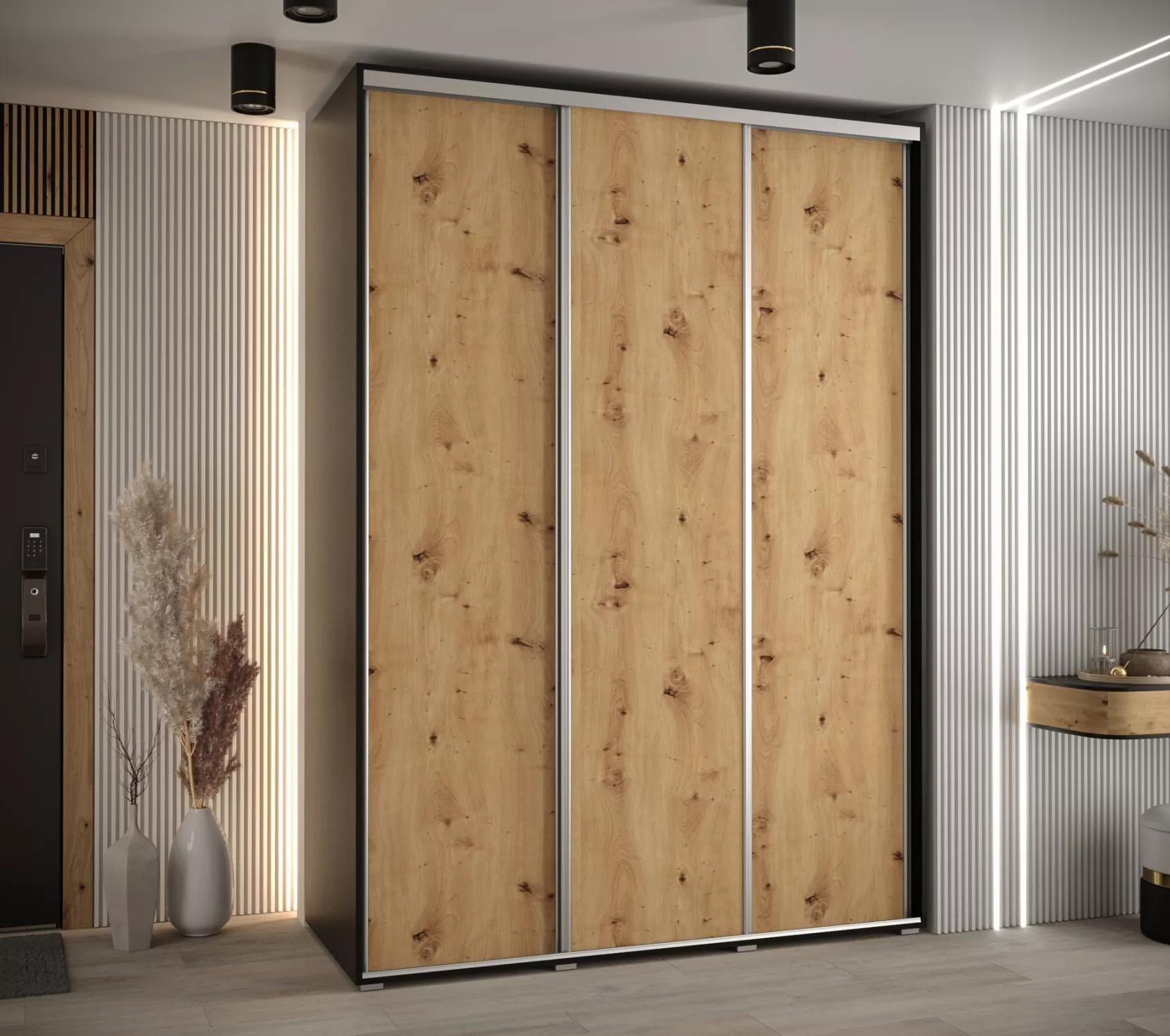 Šatní skříň ASIRI 1 - 180/60 cm, černá / dub artisan / stříbrná