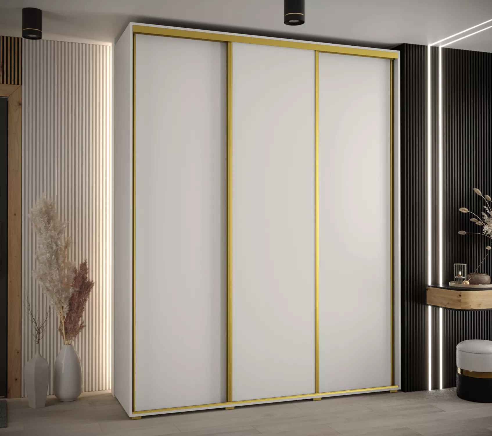 Šatní skříň ASIRI 1 - 190/60 cm, bílá / zlatá