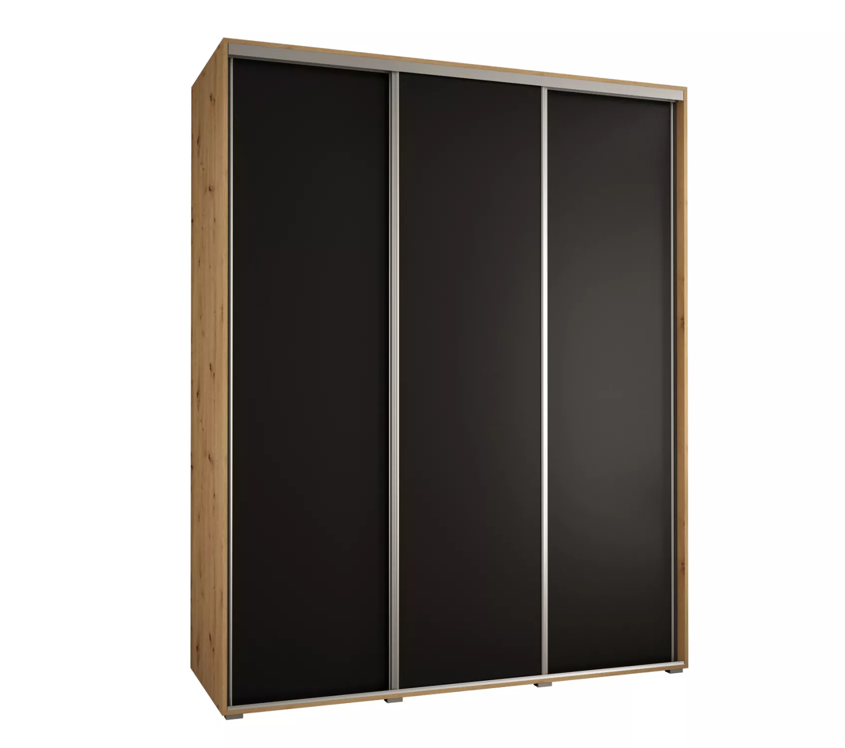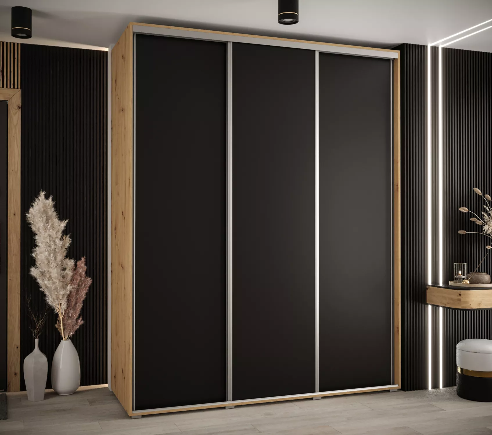 Šatní skříň ASIRI 1 - 190/60 cm, dub artisan / černá / stříbrná