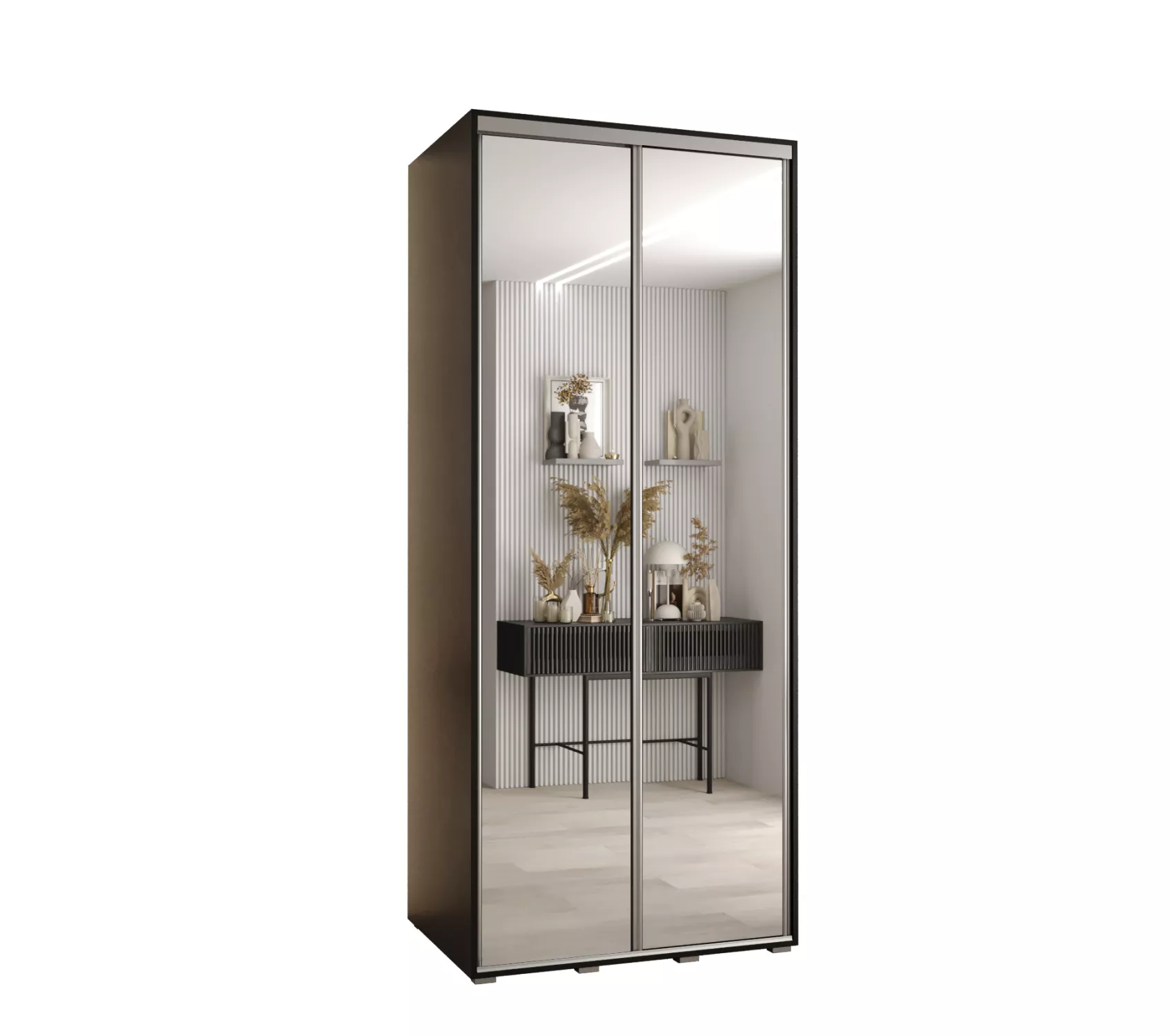 Úzká šatní skříň se zrcadlem ASIRI zaujme svým moderním designem a praktickými prvky. Skříň má posuvné dveře, které se neotvírají do prostoru a ušetří tak spoustu místa.