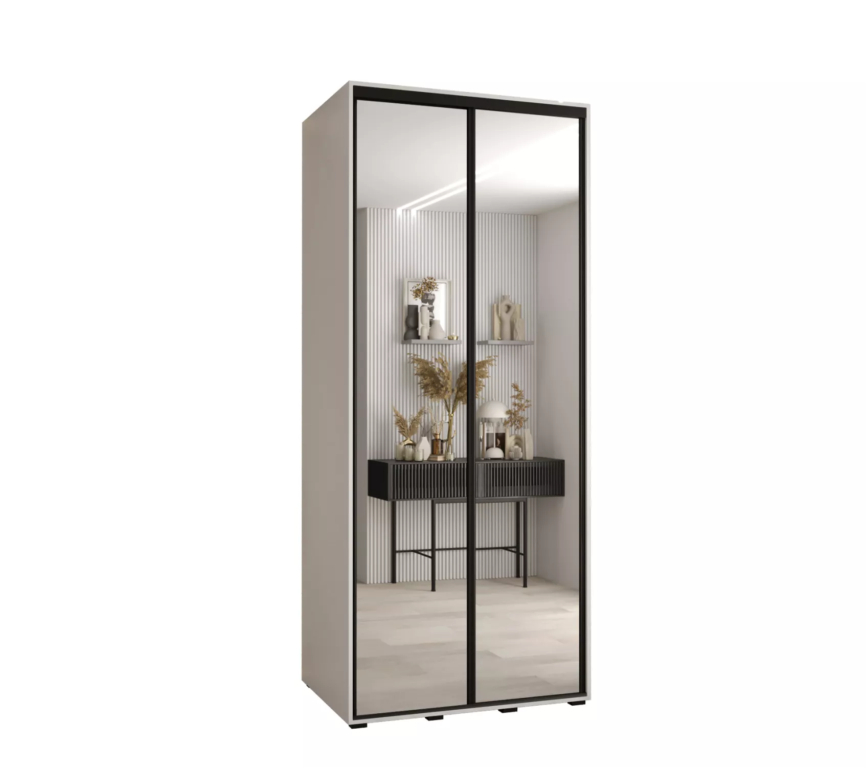 Úzká šatní skříň se zrcadlem ASIRI zaujme svým moderním designem a praktickými prvky. Skříň má posuvné dveře, které se neotvírají do prostoru a ušetří tak spoustu místa.