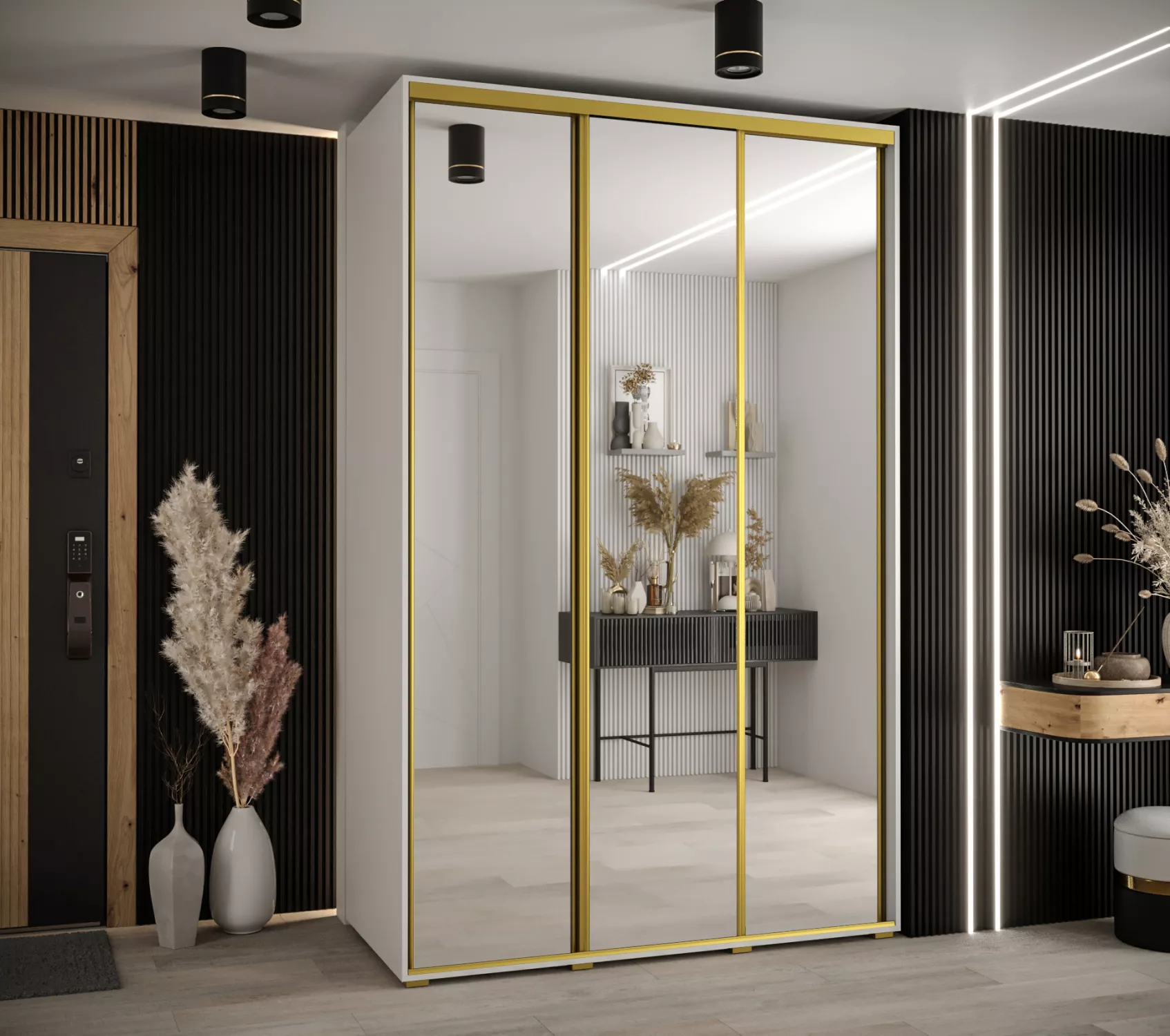 Šatní skříň ASIRI 2 - 150/60 cm, bílá / zlatá