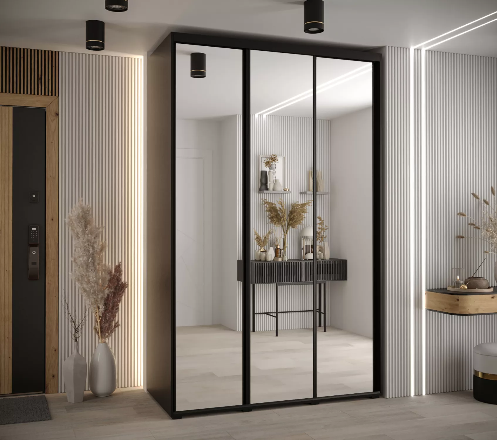 Vysoká zrcadlová šatní skříň ASIRI zaujme svým moderním designem a praktickými prvky. Skříň má posuvné dveře, které se neotvírají do prostoru a ušetří tak spoustu místa. Vnitřek skříně lze uspořádat dle vašich potřeb.