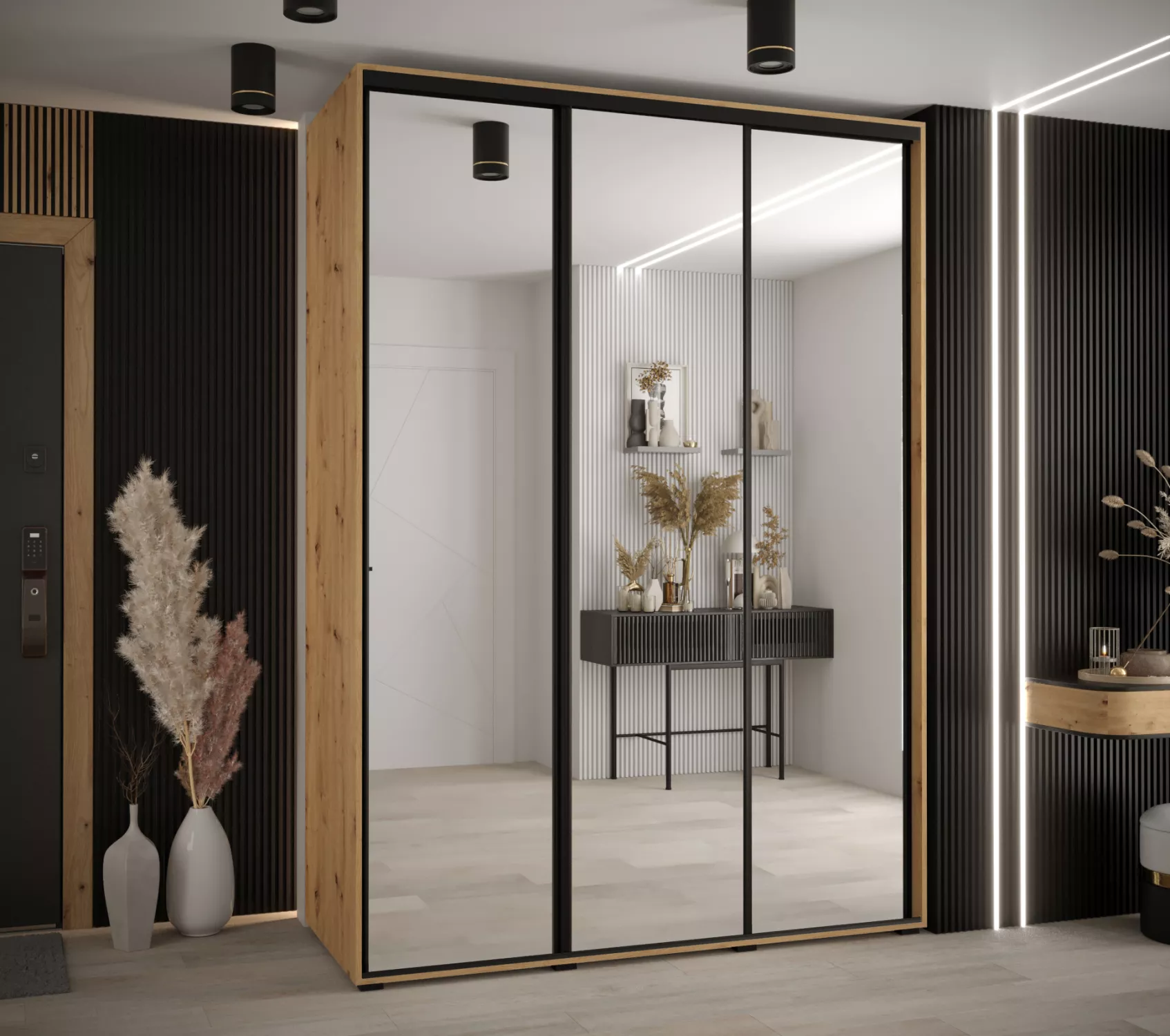 Vysoká šatní skříň se zrcadlem ASIRI zaujme svým moderním designem a praktickými prvky. Skříň má posuvné dveře, které se neotvírají do prostoru a ušetří tak spoustu místa. Vnitřek skříně lze uspořádat dle vašich potřeb.