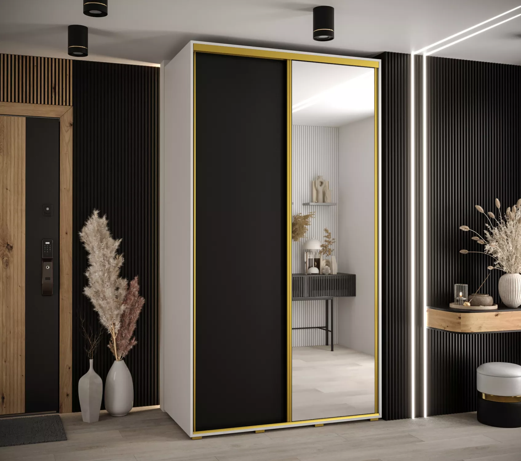 Šatní skříň ASIRI 3 - 130/60 cm, bílá / černá / zlatá