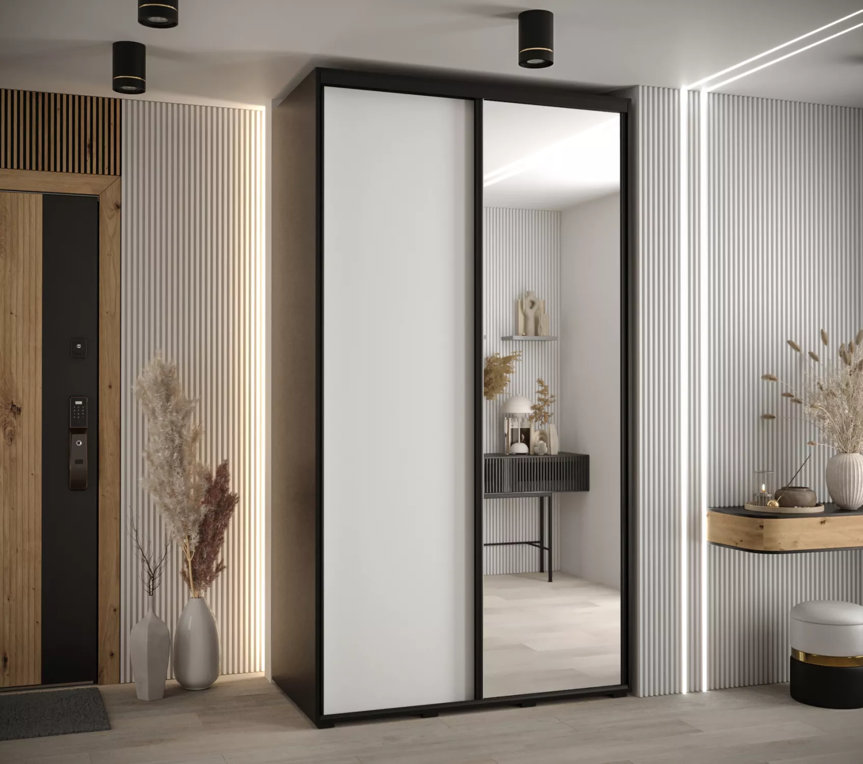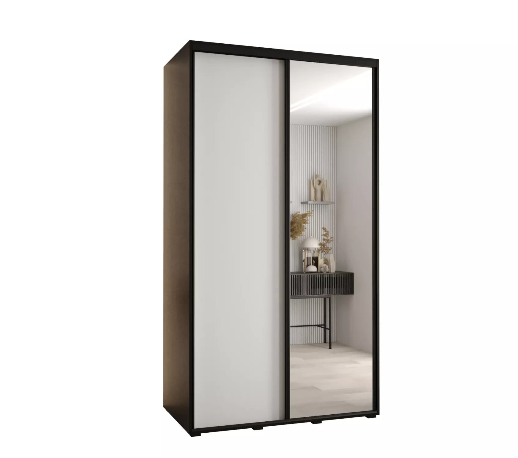 Šatní skříň se zrcadlem ASIRI zaujme svým moderním designem a praktickými prvky. Skříň má posuvné dveře, které se neotvírají do prostoru a ušetří tak spoustu místa. Vnitřek skříně lze uspořádat dle vašich potřeb.