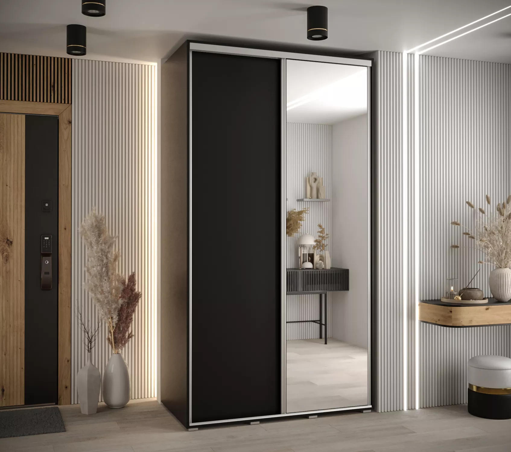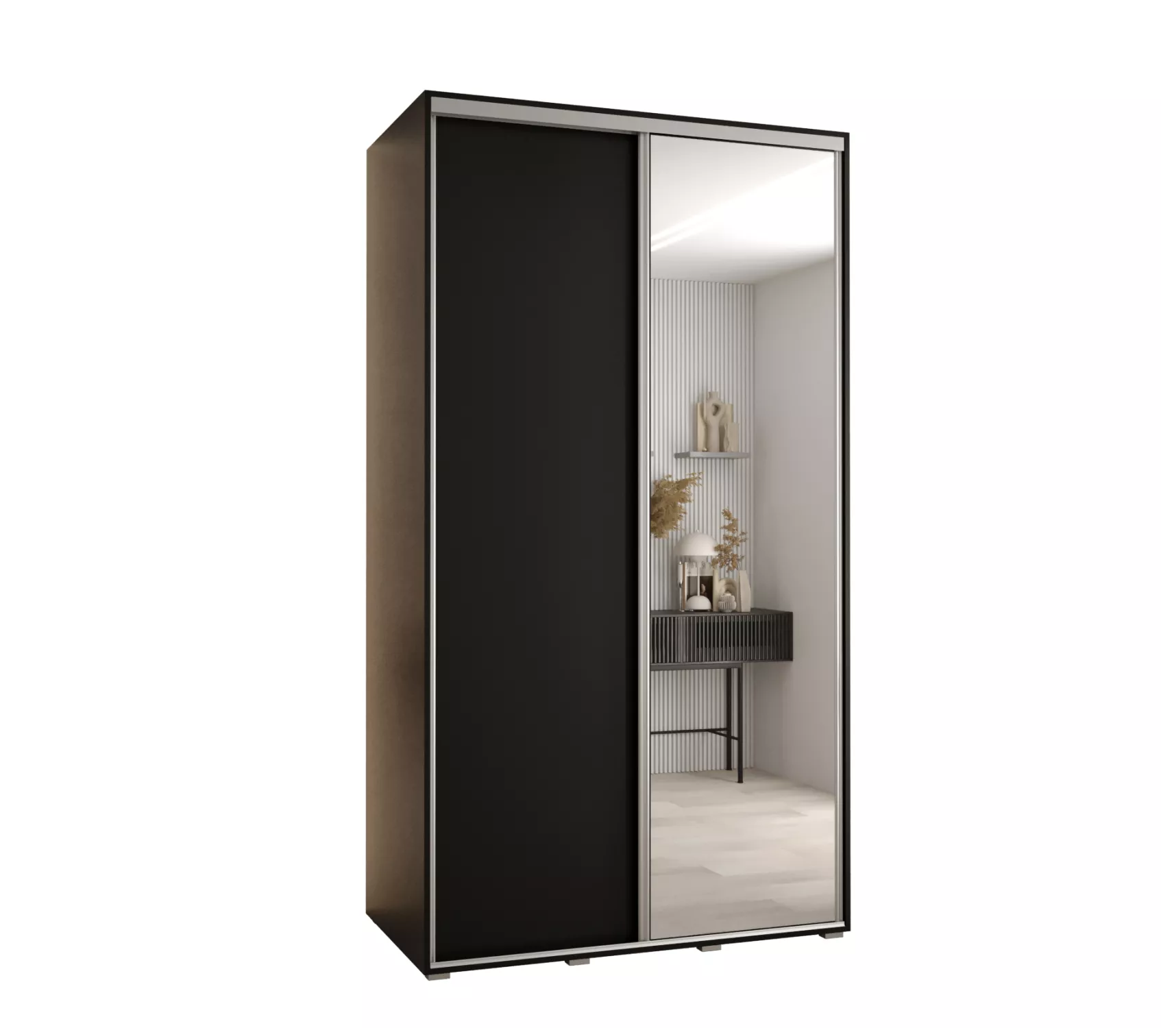 Šatní skříň se zrcadlem ASIRI zaujme svým moderním designem a praktickými prvky. Skříň má posuvné dveře, které se neotvírají do prostoru a ušetří tak spoustu místa. Vnitřek skříně lze uspořádat dle vašich potřeb.