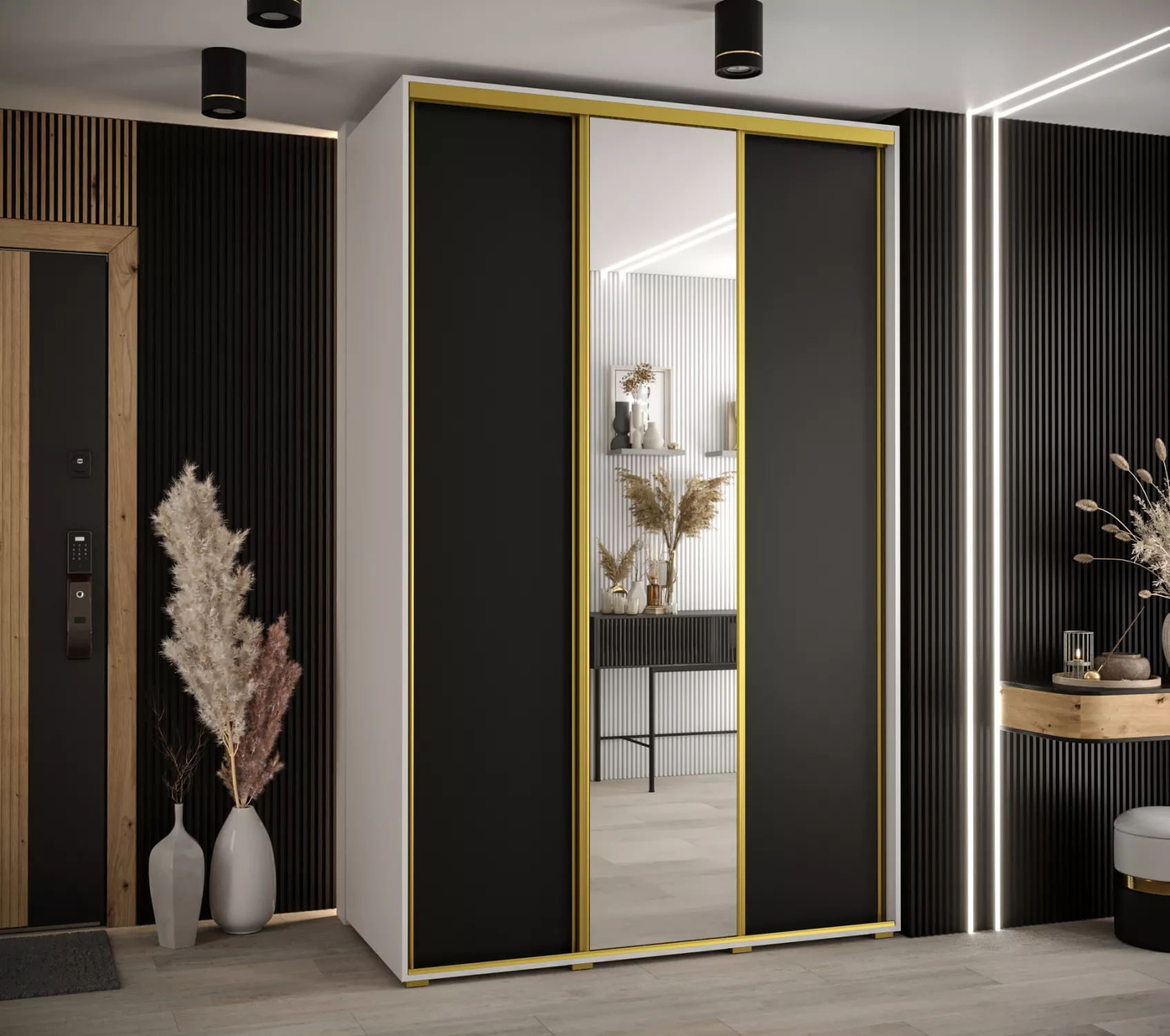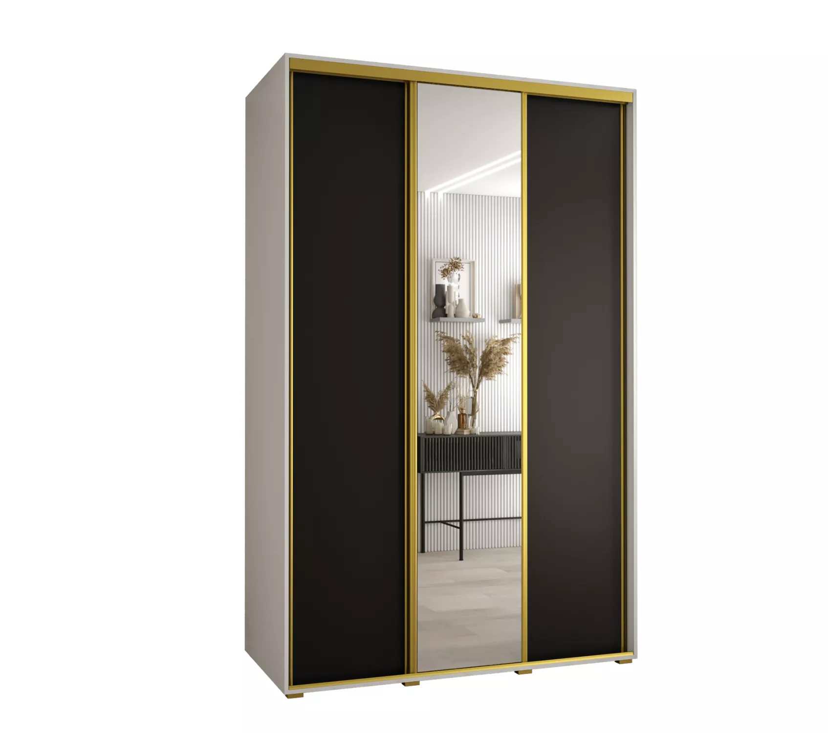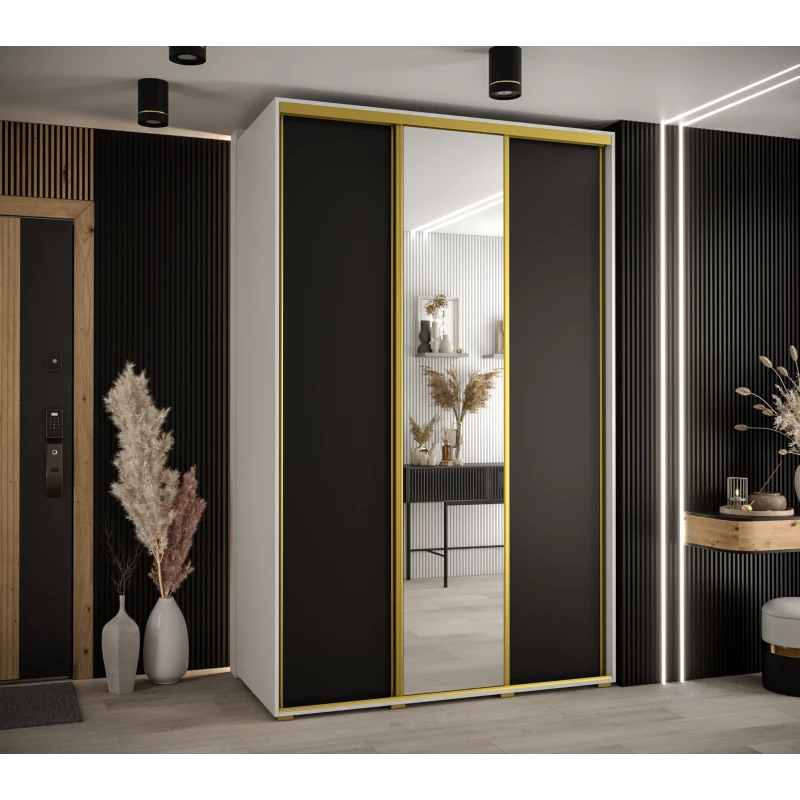 Šatní skříň ASIRI 3 - 150/60 cm, bílá / černá / zlatá