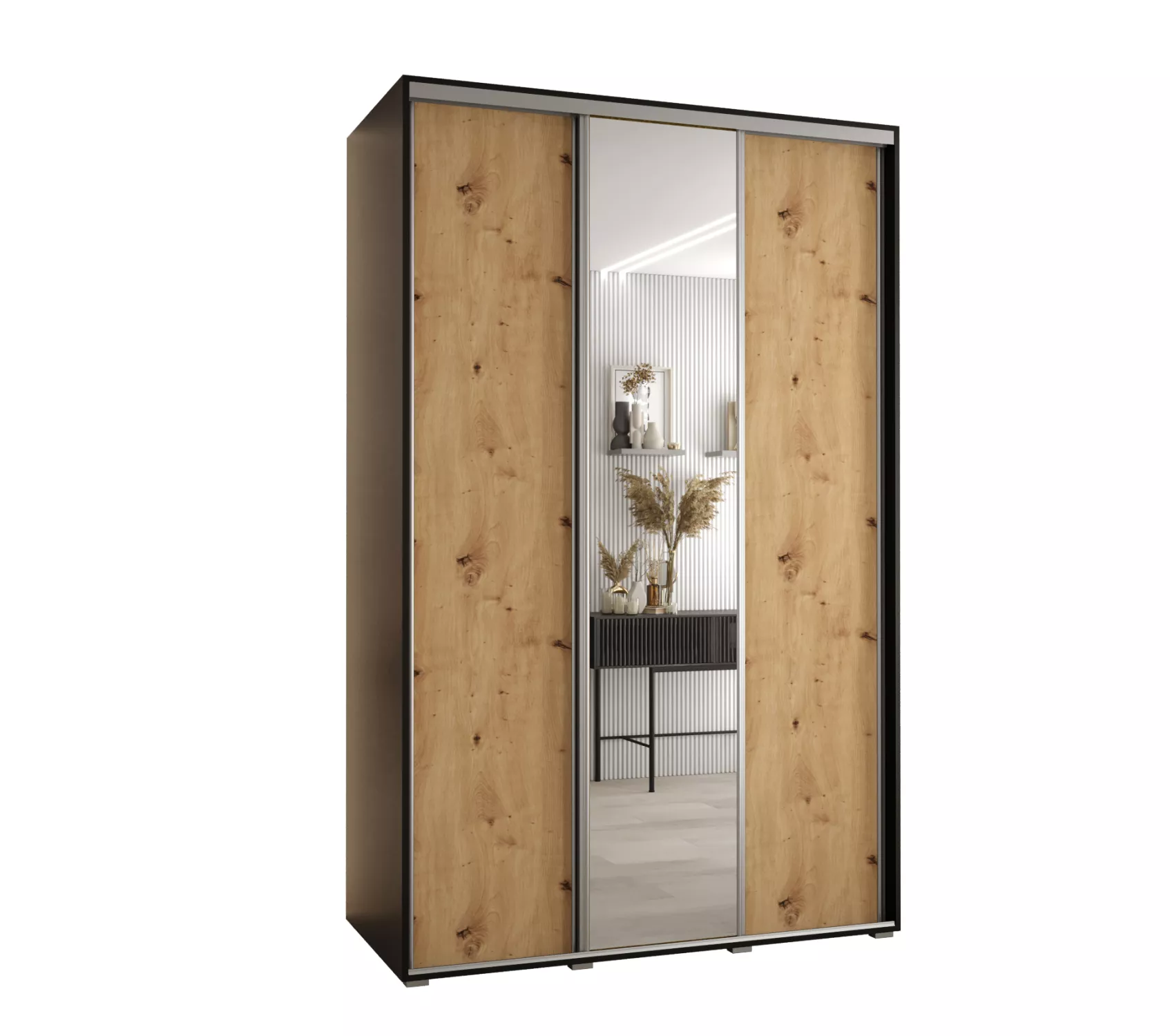 Šatní skříň ASIRI 3 - 150/60 cm, černá / dub artisan / stříbrná