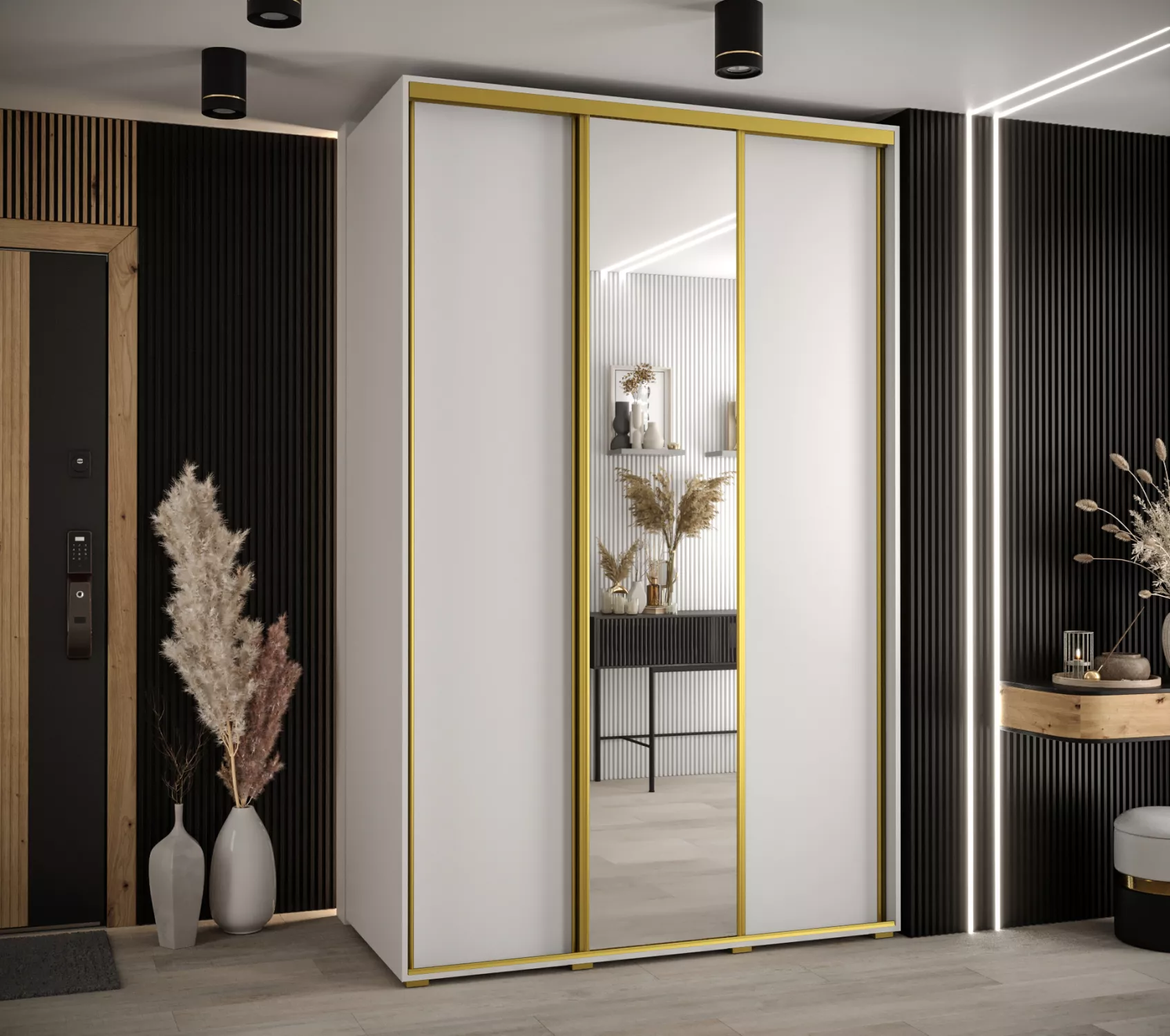Šatní skříň ASIRI 3 - 160/60 cm, bílá / zlatá