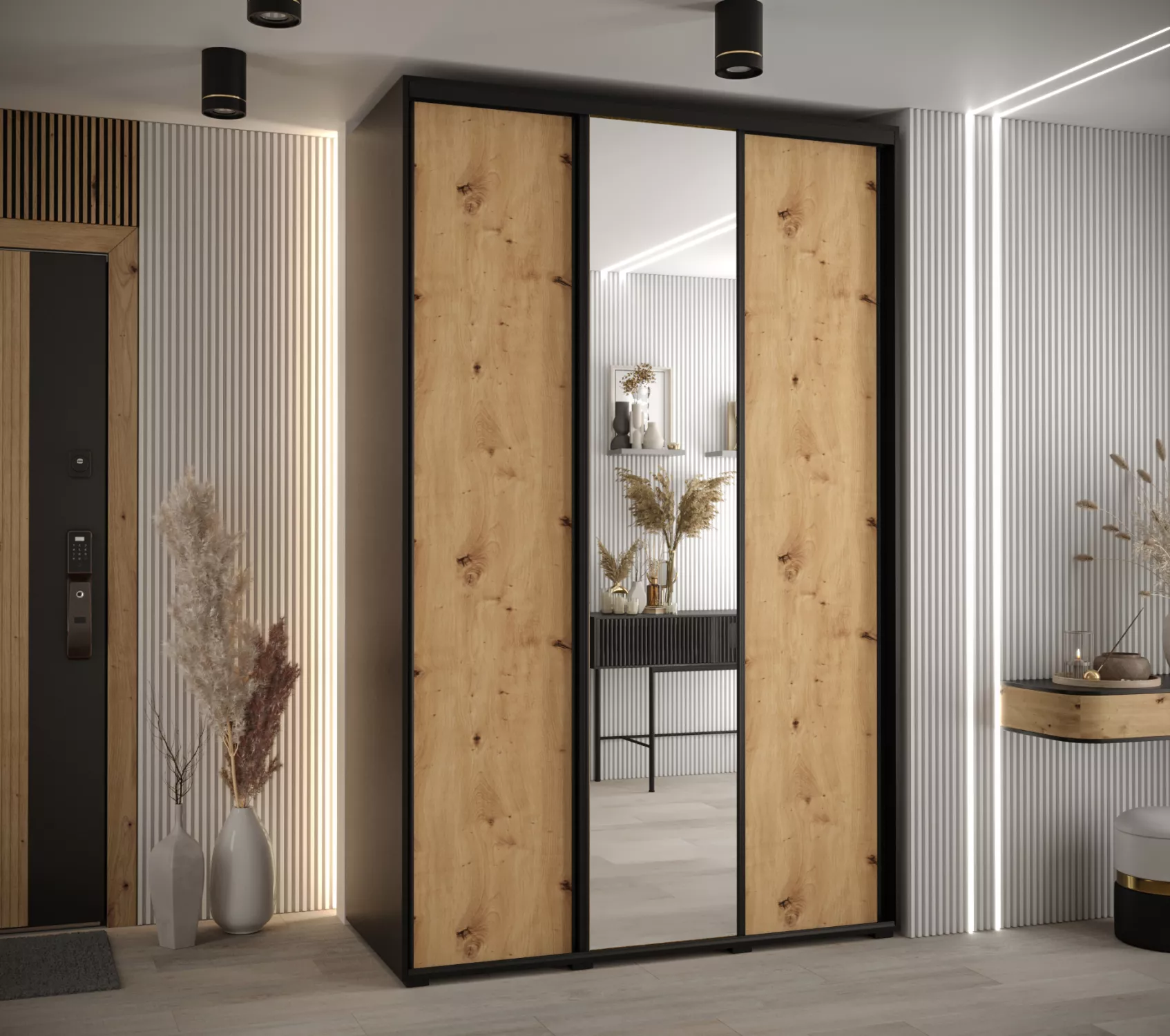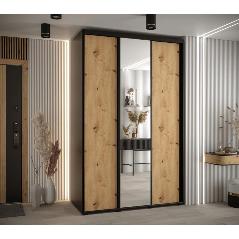 Šatní skříň ASIRI 3 - 160/60 cm, černá / dub artisan / černá