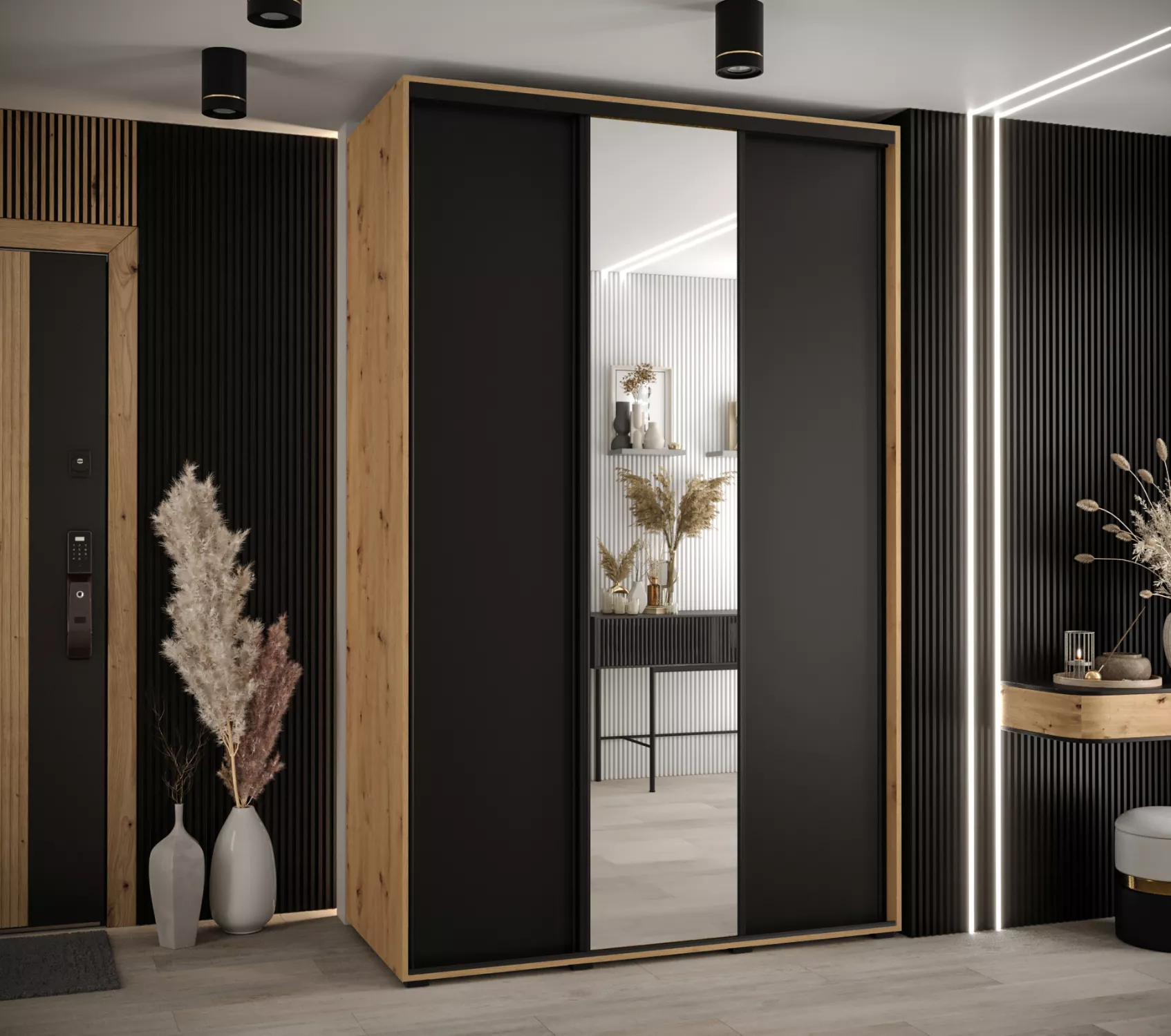 Šatní skříň ASIRI 3 - 160/60 cm, dub artisan / černá / černá