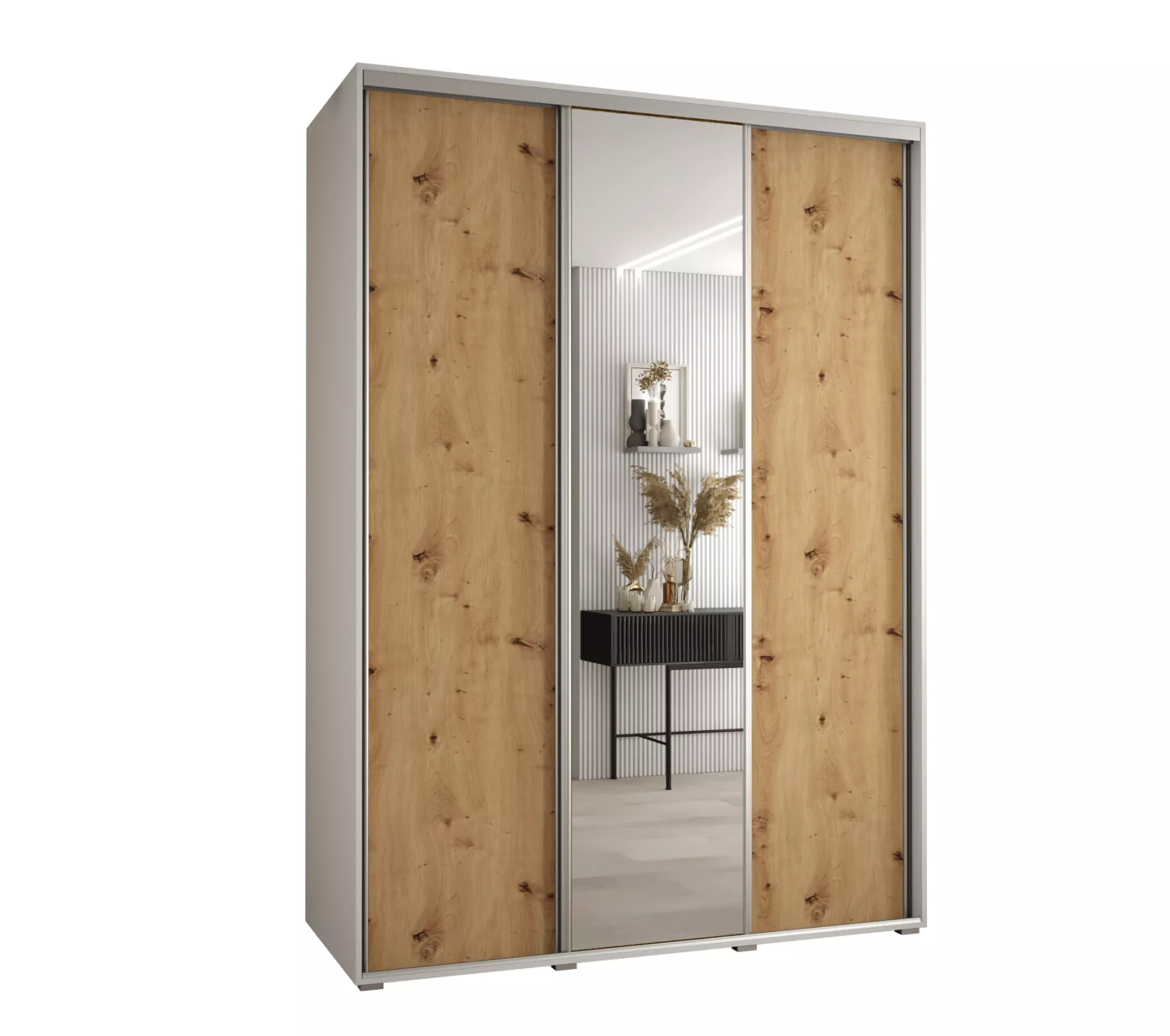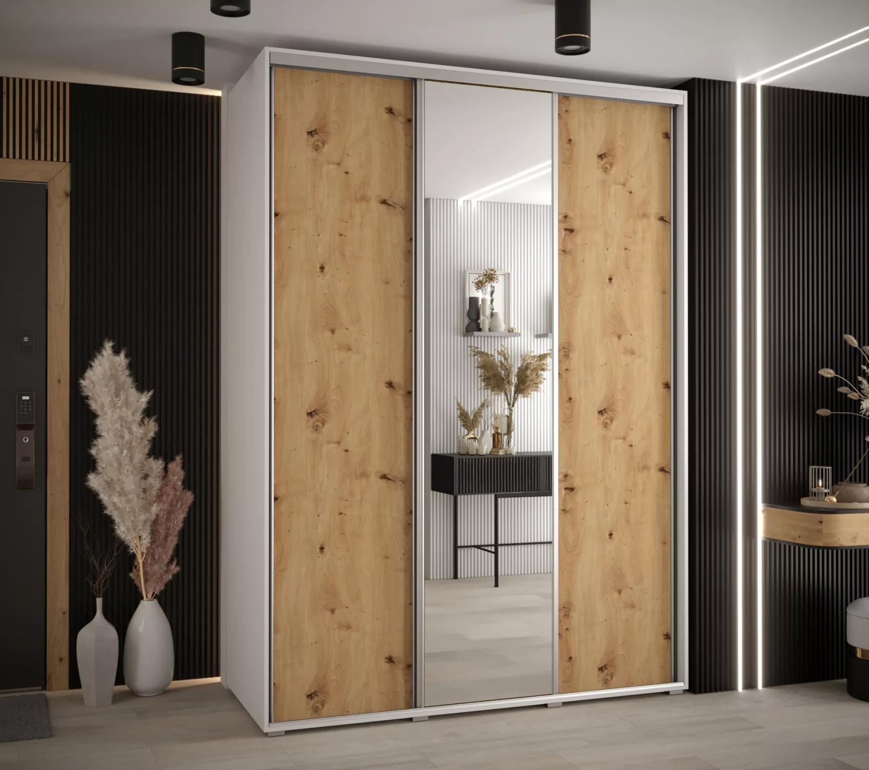 Šatní skříň ASIRI 3 - 170/60 cm, bílá / dub artisan / stříbrná