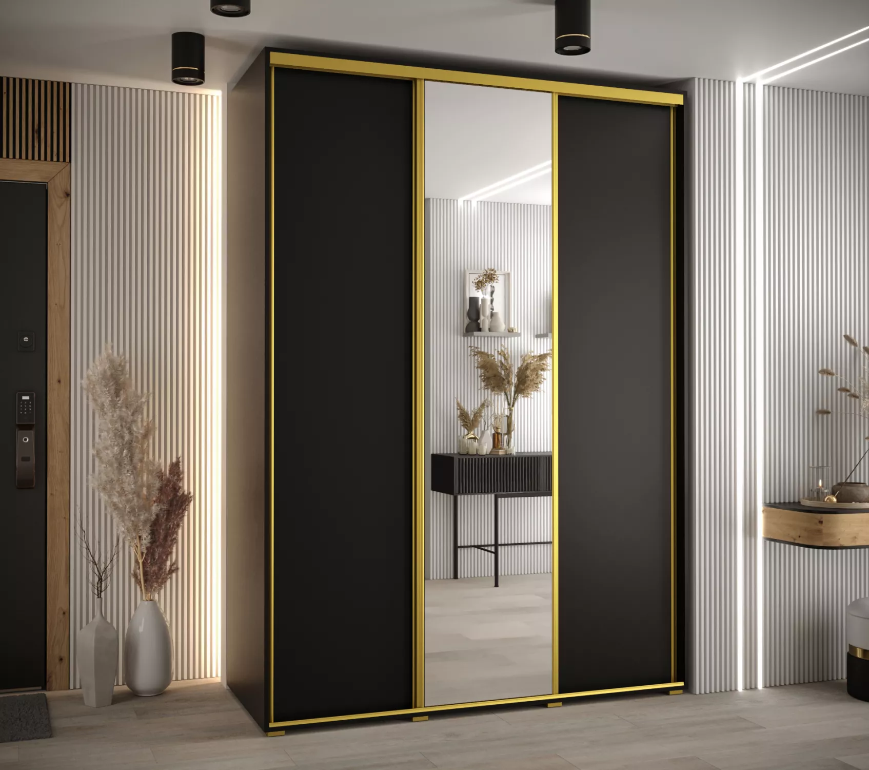 Šatní skříň ASIRI 3 - 170/60 cm, černá / zlatá